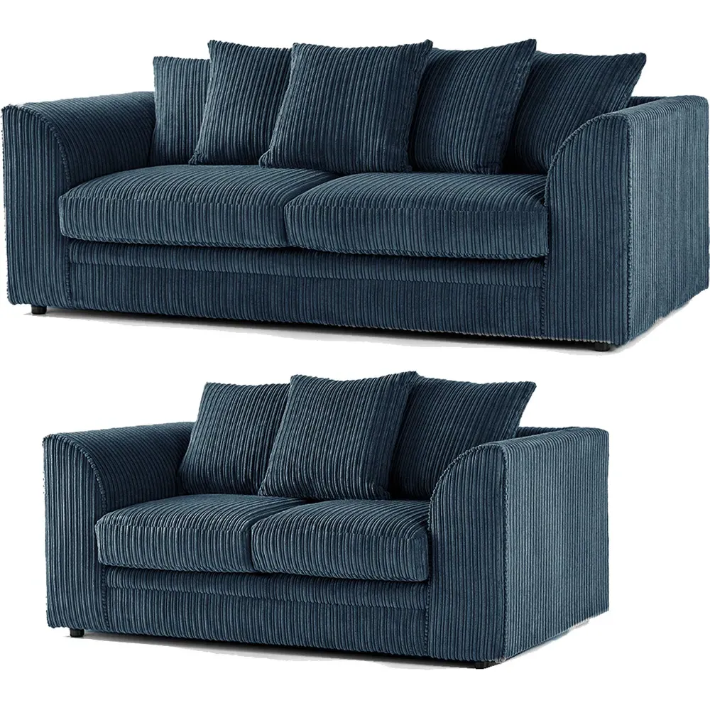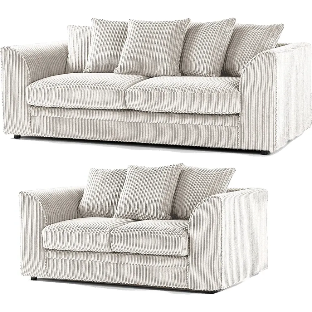 The set is designed for soft, cosy evenings. It's upholstered in a luxurious jumbo corduroy fabric. With a soft fabric, you need comfortable fillings. These cord sofa suites include deep foam seating cushions and synthetic fibre-filled scatter back cushions. Requires minimum door width of 65cm.