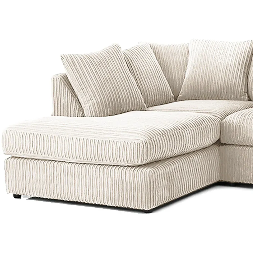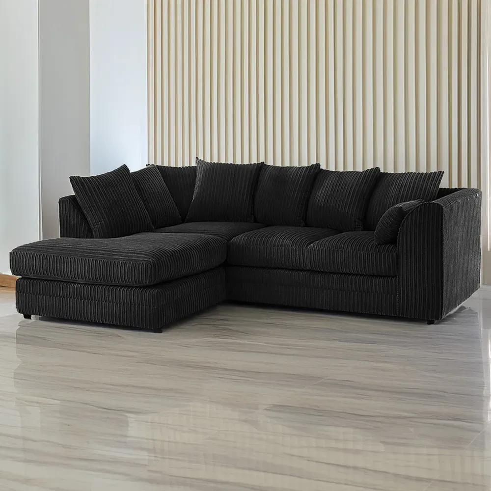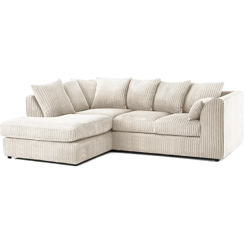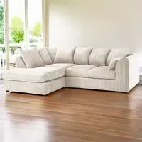 The Luxor corner sofa combines comfort with space-saving design, featuring luxury foam-filled seating and a plush scatter back cushion arrangement. Its durable jumbo cord upholstery provides both texture and longevity, while the left-hand configuration suits various room layouts. The sofa arrives in 2 pieces for convenient delivery and requires only a 65cm door width for access.