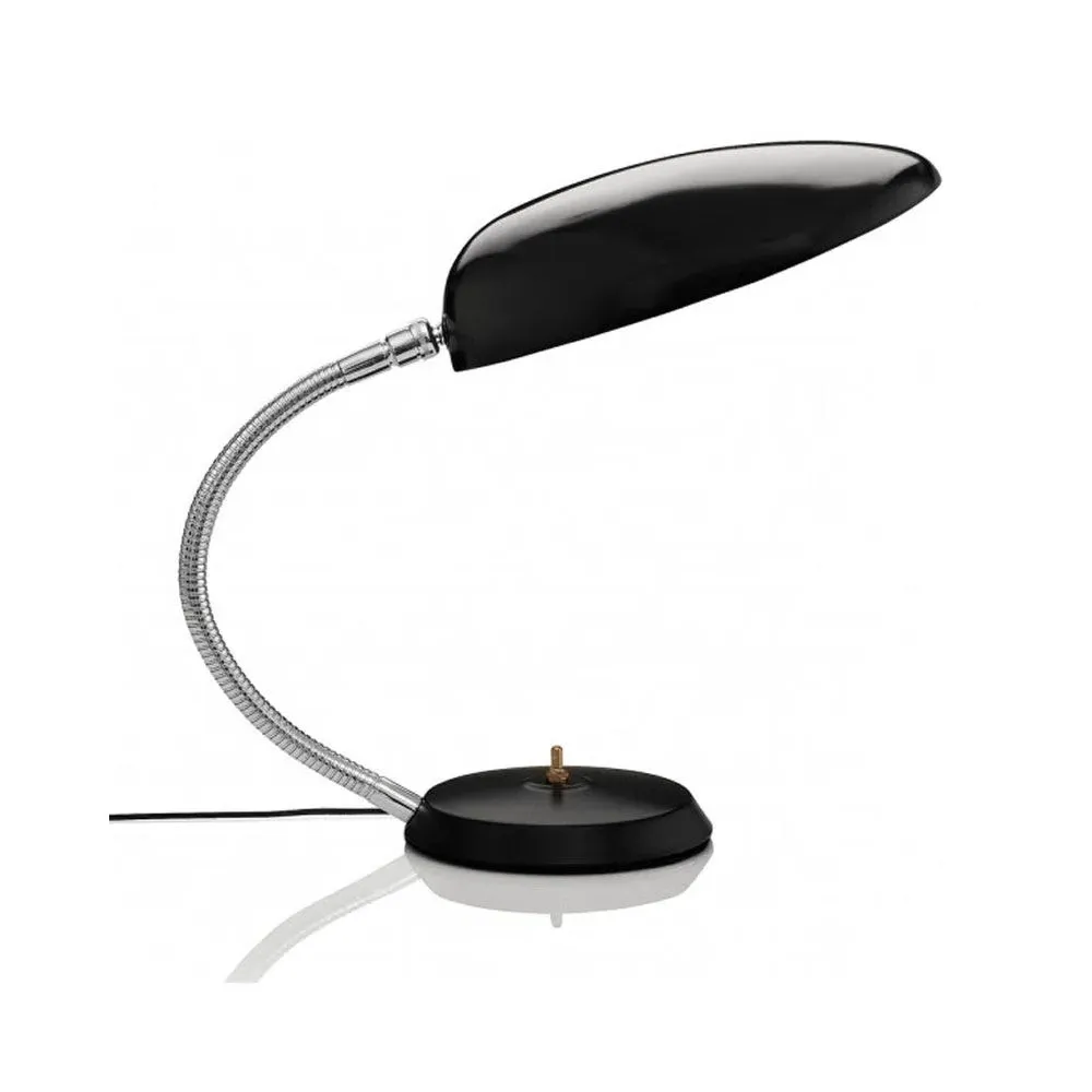 The table lamp combines steel and brass construction with chrome-plating for refined aesthetics. Its adjustable shade offers directional lighting control, while the glossy finish adds visual depth. The articulated arm provides flexible positioning, and the solid base ensures steady operation.