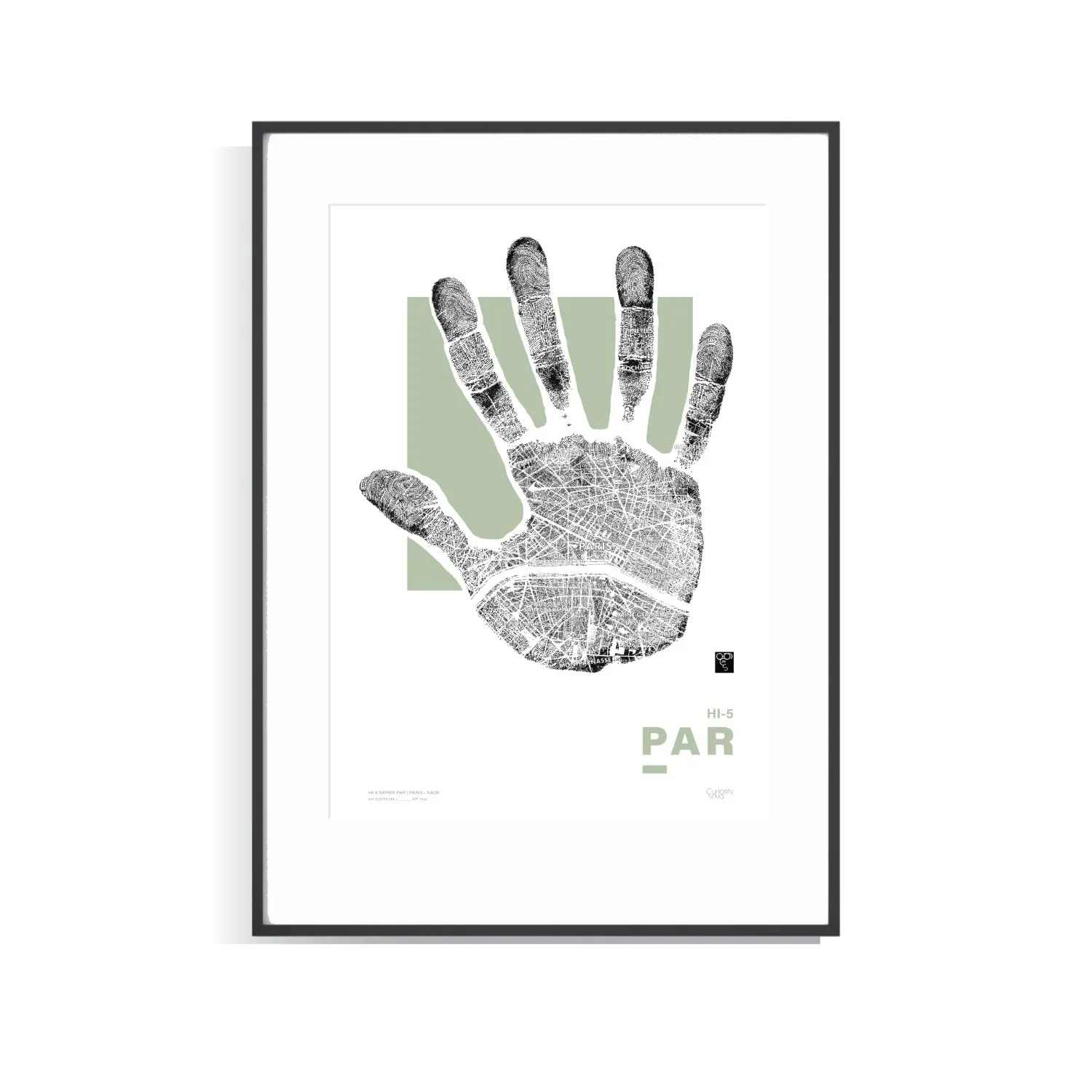 The Hi-Five Series London Limited Edition Print features a symbolic handprint filled with intricate street map lines celebrating the capital's layered identity. Its detailed design reveals 24 hidden areas of the city among dots and map lines, from Hampstead Heath to Brixton. The piece connects place and viewer through London's energy and diversity woven into the handprint design. Handcrafted using archival-quality paper and inks with dimensions of 297 x 420mm.