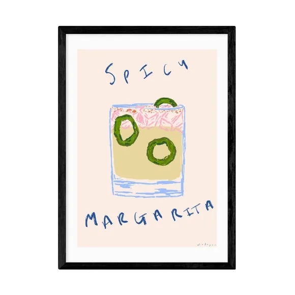 The typography print features bold spicy margarita artwork with vibrant personality. Its giclee printing process provides fade resistance lasting up to 70 years, while the 210gsm acid-free archival paper ensures long-term durability. The print comes with frame options in black, white, and oak effect finishes. Available in multiple sizes from A4 to A1 to suit various wall spaces.