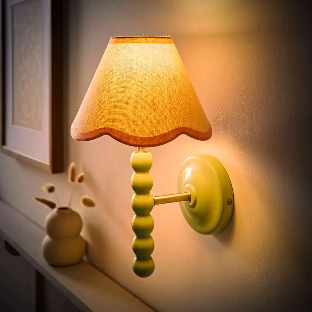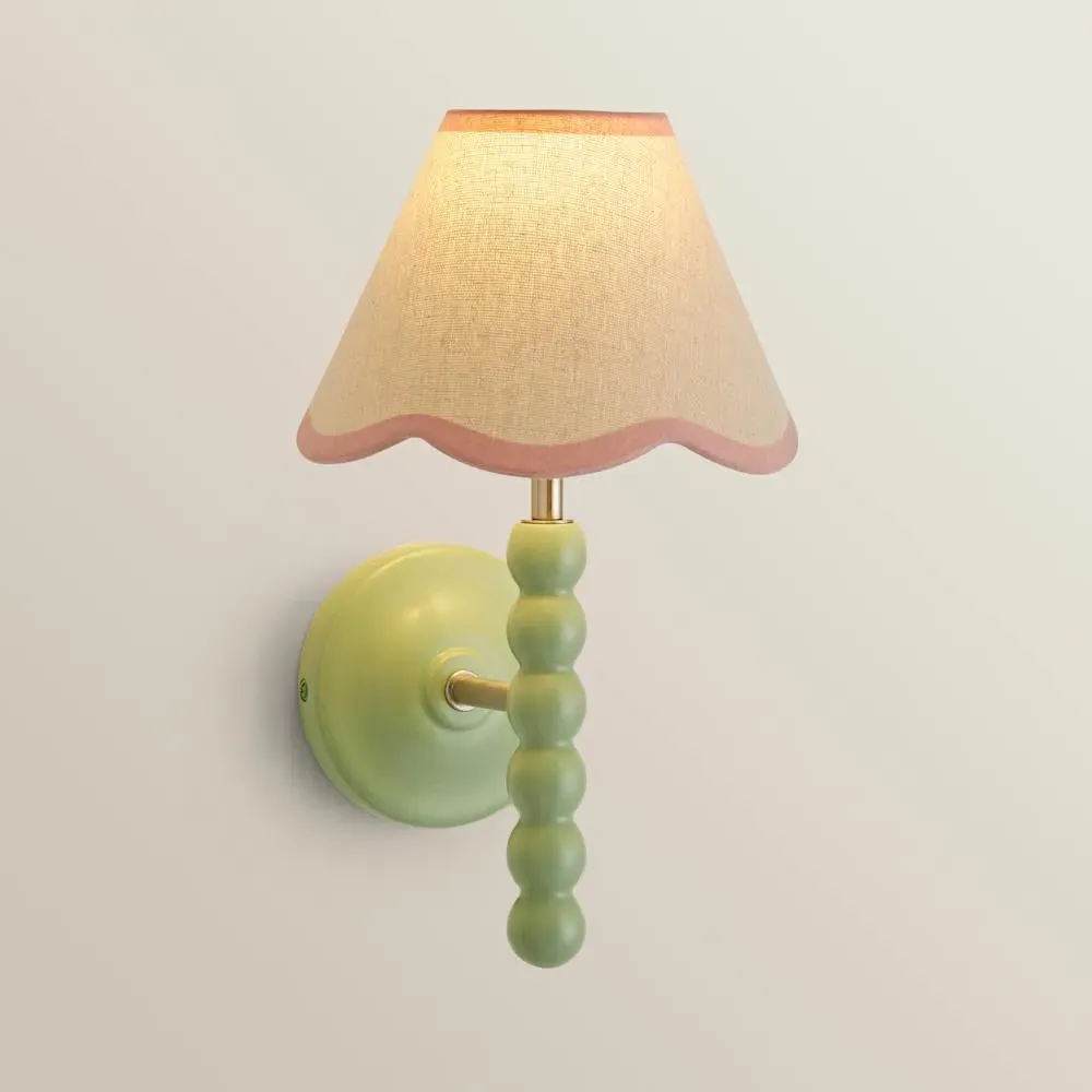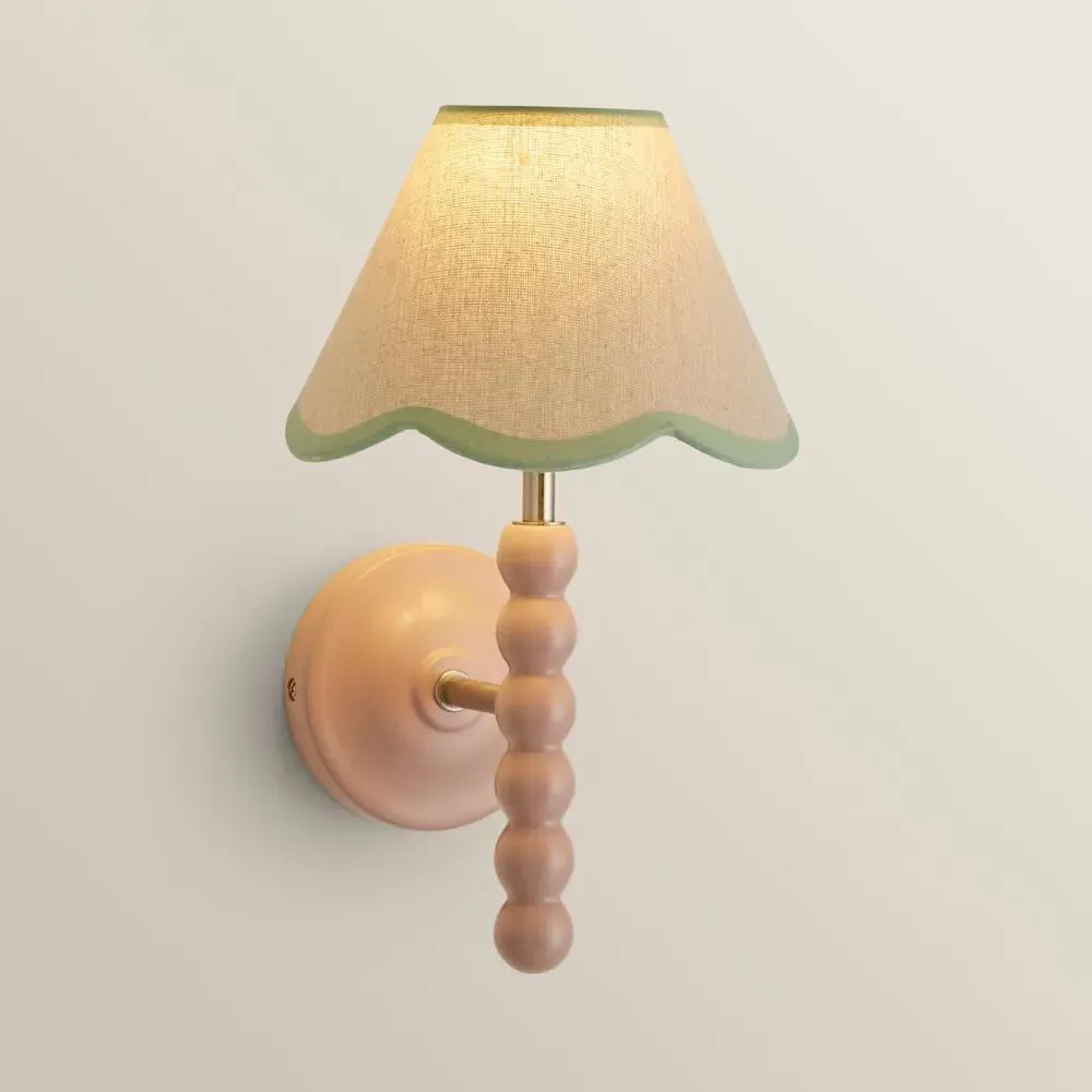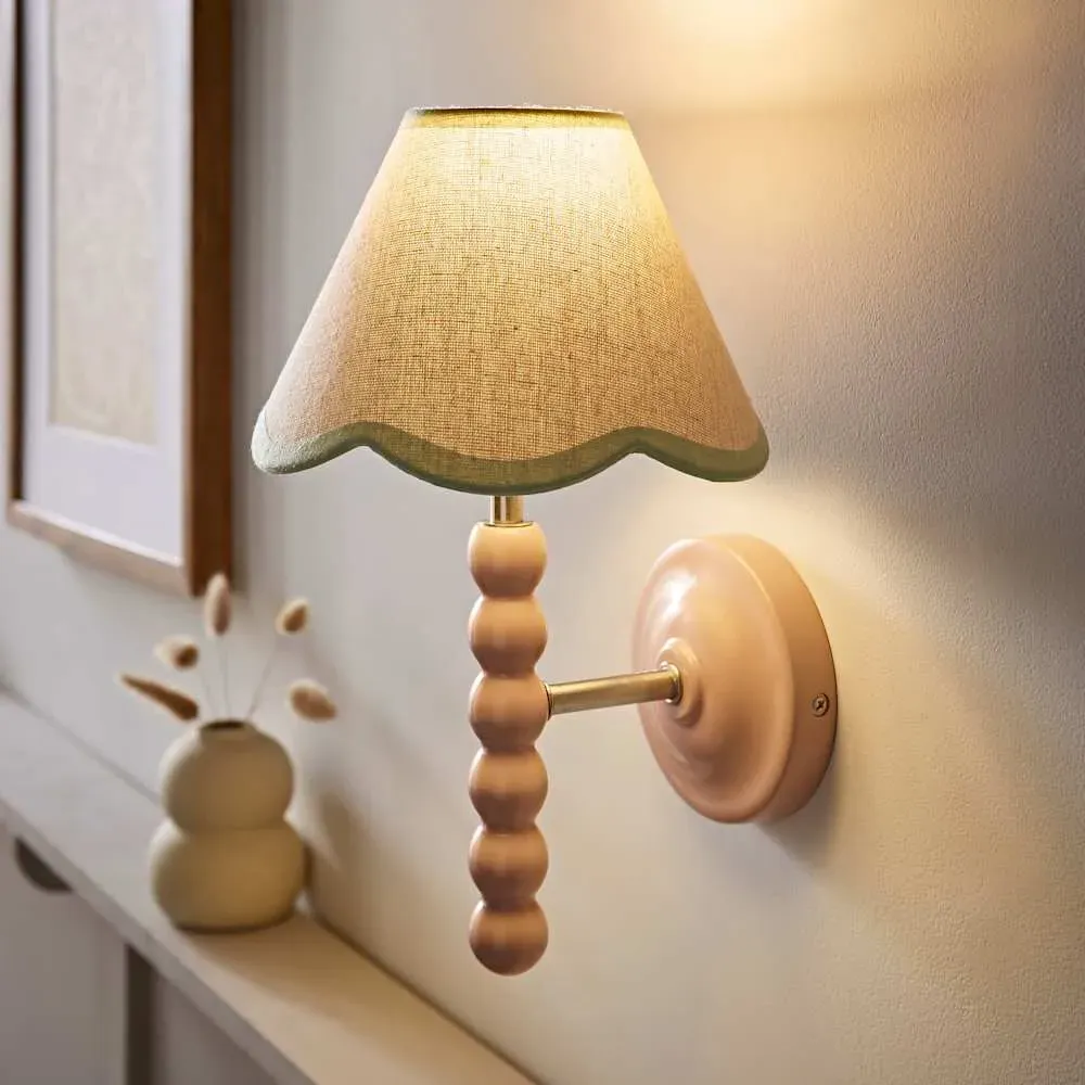 The Bobbin LED Wall Light combines a stacked bobbin design with scalloped edge detailing for distinctive wall lighting. Its wooden construction ensures lasting quality, while the E14 bulb fitting provides flexible lighting solutions. The pastel shade adds subtle color accent, and the included bulb offers ready-to-install convenience.