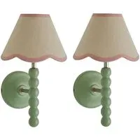Add a playful pop of colour with this pastel wooden wall light, featuring an on-trend stacked bobbin design. Perfectly paired with the pastel trim scalloped edge shade, which is available in powder blue, rose pink and sage green, it’s ideal for brightening bedrooms, hallways, or living rooms. Part of our Bobbin range, it’s made for mixing and matching to create the look you love. Just add an E14 bulb to bring your space to light.