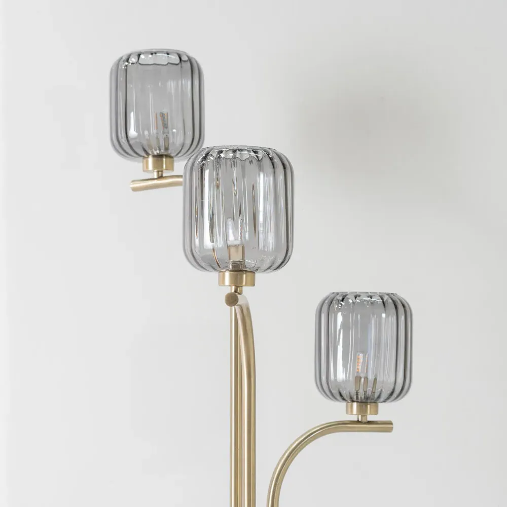 The Amelie wall lamp features ribbed glass construction with a gold stem finish for art deco appeal. Its wall-mounted design saves surface space while providing subtle illumination through the textured glass shade. The LED technology offers energy efficiency, and the versatile gold finish complements various interior styles.