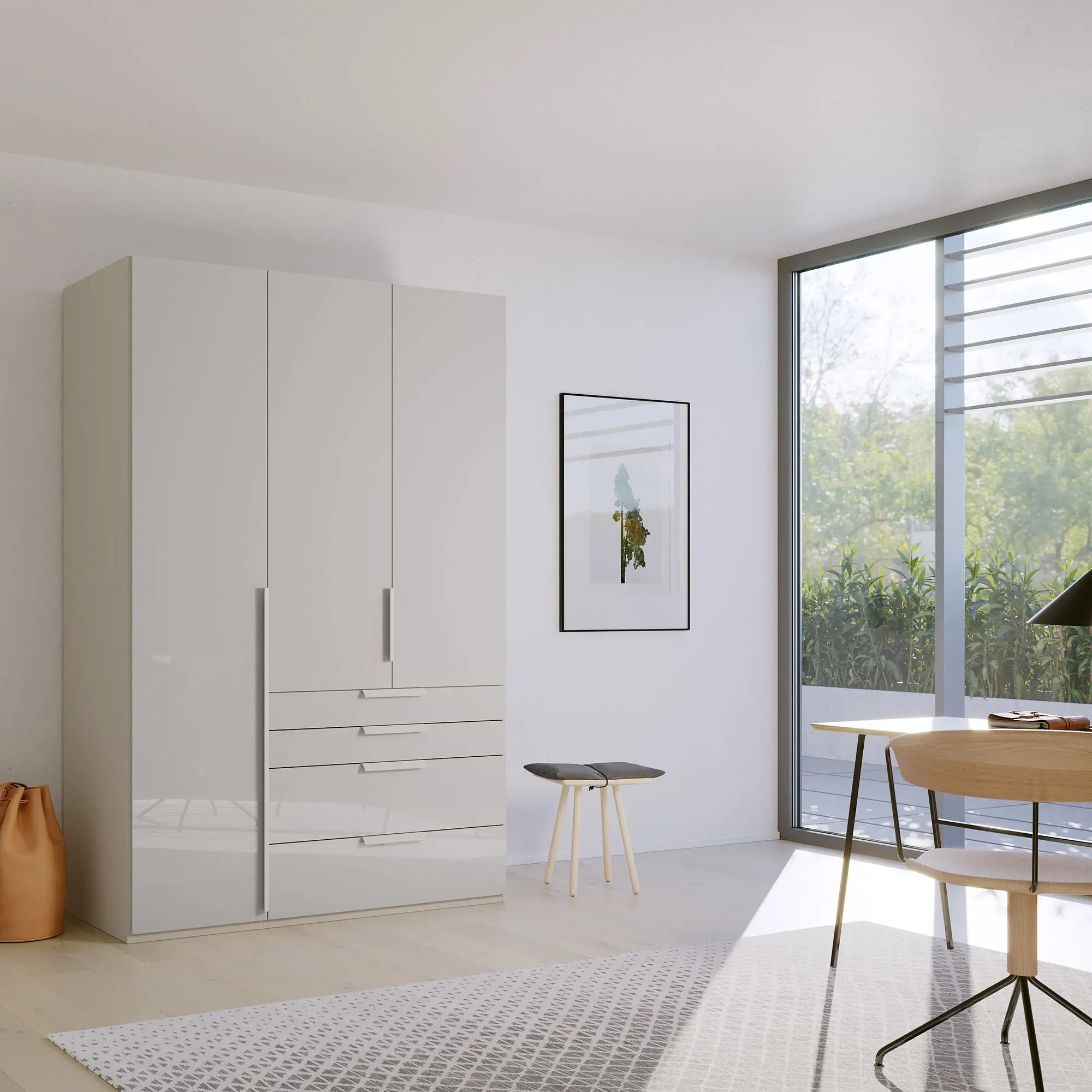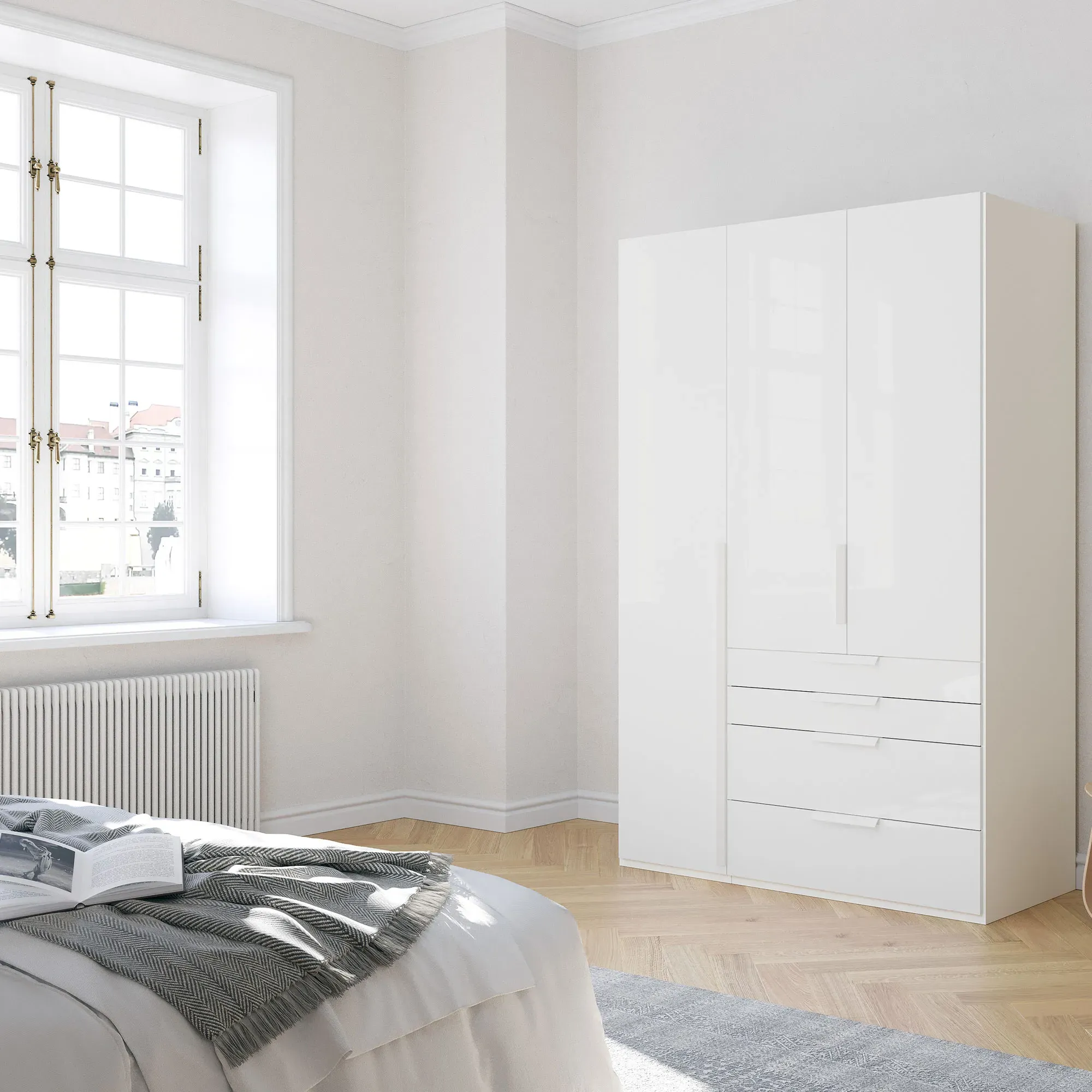 Engineered Wood And Veneer, Coloured Front. Frans 3 Door Wardrobe 151Cm, Grey | Barker & Stonehouse