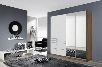Homburg wardrobe gives a bedroom very special flair with its striking wardrobe design. If you want to choose between stylish design, reliable quality and attractive price, than this is the right choice for you. This wardrobe is made from solid MDF wood. Rauch Homburg wardrobe comes with the top drawer featuring an amazing sectioned jewellery compartment! The 2 lower drawers are double deep ideal for larger garments. Great German build quality. All Rauch furniture are made to order & can be delivered in 8 Weeks. This Item is easy to assemble. You can reserve this Gorgeous German bedroom furniture by just paying 50% Deposit & rest before the delivery. 0% Finance available. Excellent 5 Star Customer Service. This wardrobe is on Sale & in stock, available to buy online for free delivery across UK. Available to purchase online at Choice Furniture Superstore and at the CFS furniture shop in Leicester, East Midlands. CFS offers free fast delivery on Rauch Homburg 4 Door Combi Wardrobe in Oak and White - W 181cm is available at UK best highstreet stores. Wardrobe Boxing Day Furniture Deals. Boxing Day Furniture Sale. Boxing Day Wardrobe Wardrobe Best furniture shop in Leicester,Leicestershire,East Midlands Selling. Spring Deals. Spring Furniture Sale. Black friday furniture sale, black friday Wardrobe sale Best furniture shop in Leicester,Leicestershire,East Midlands Selling. Deals. Furniture sale,Wardrobe sale Best furniture shop in Leicester,Leicestershire,East Midlands Selling. Deals. Black Friday Furniture Sale, Black Friday Wardrobe Sale Best furniture shop in Leicester,Leicestershire,East Midlands Selling. Deals. Black Friday Furniture Sale, Black Friday Wardrobe Sale