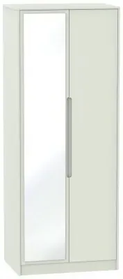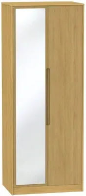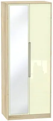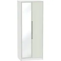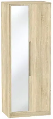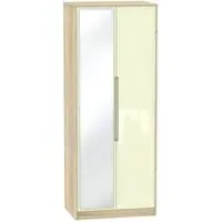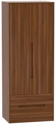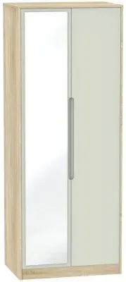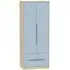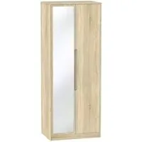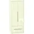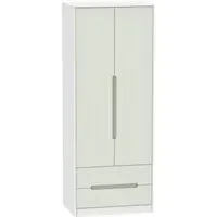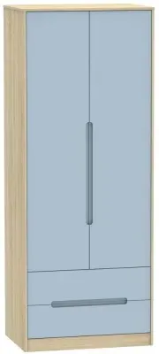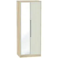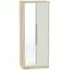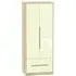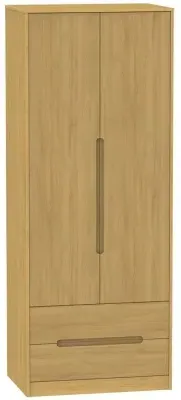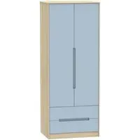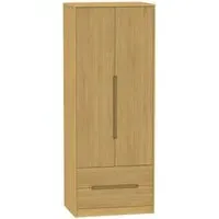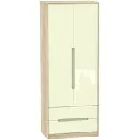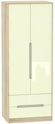 The Monaco wardrobe combines cashmere door fronts with oak accents for a refined two-tone finish. Its scratch-resistant vinyl construction provides lasting durability, while the linen-effect drawer interiors add a quality touch. The tall design offers generous hanging space alongside two practical drawers, and the high-quality runners ensure smooth operation.