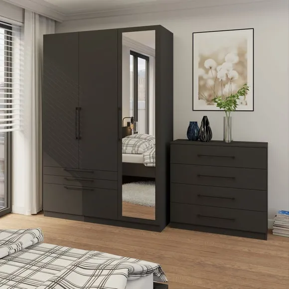 Home  /  Bedroom  /  Wardrobe  /  Triple Wardrobe with 3 Drawers - Anthracite