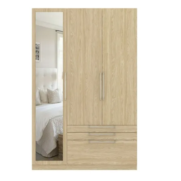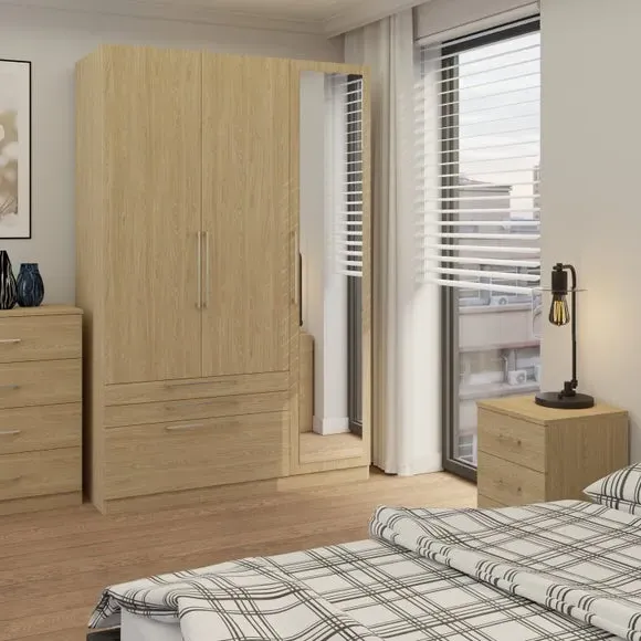 * Spacious triple wardrobe* 3 soft-close drawers* Options for no mirror/mirrored* Available in oak effect or anthracite grey* Modern metal bar handles* Adjustable shelves and hanging rails Storage for your clothes and other accessories has never been easier than with the Foster Triple 3 Drawer Wardrobe. Featuring modern metal bar handles and adjustable shelves and hanging rails, the wardrobe space is flexible to suit your needs. The 3 soft-close full extension drawers add more storage, and there's options for oak effect or anthracite grey finishes and no mirror/mirrored choices too. Ideal for contemporary bedrooms, adding style without compromising on space and flexibility. Please note: we cannot deliver this product to Northern Ireland