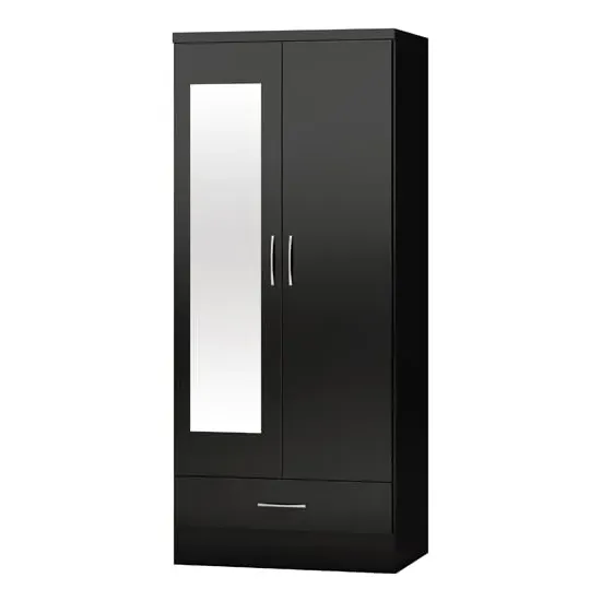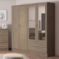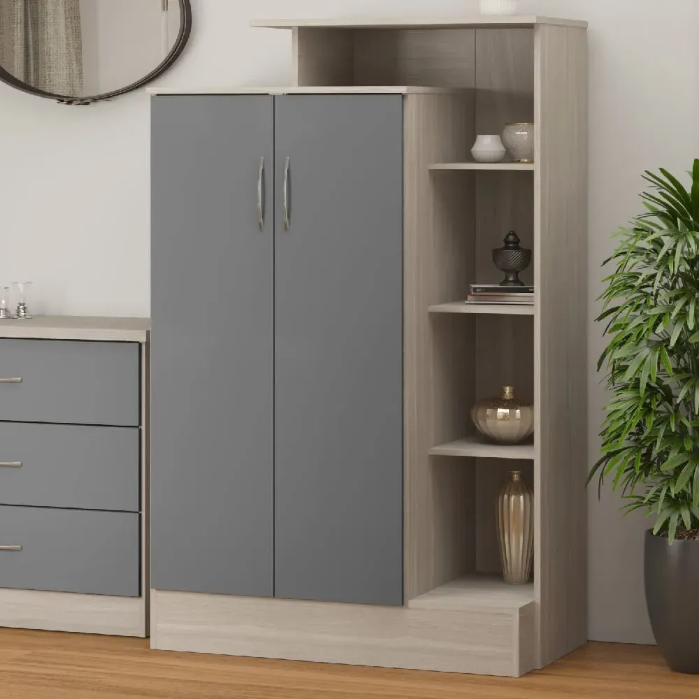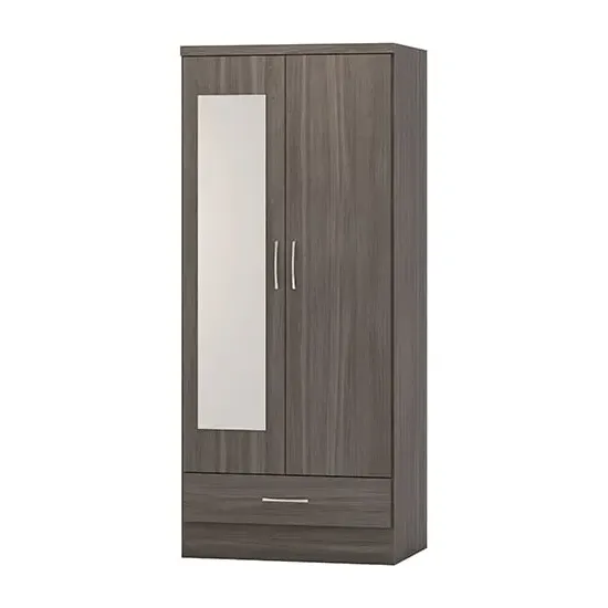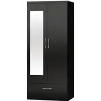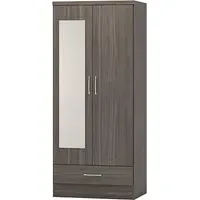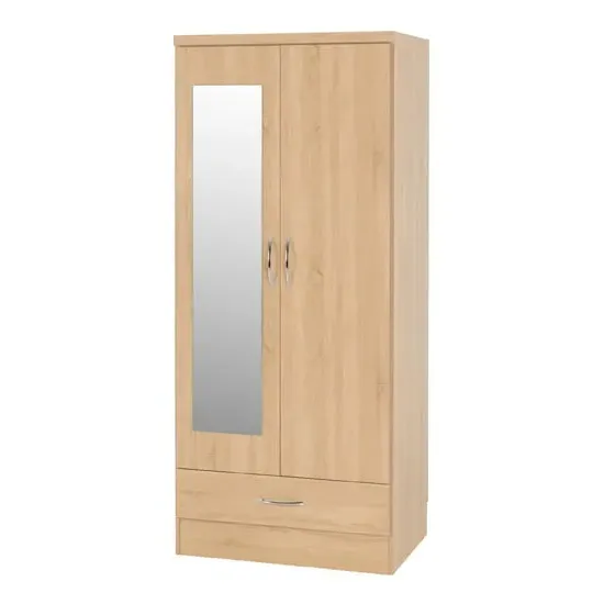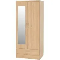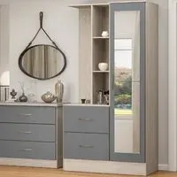 The Mack Wardrobe offers practical storage with its single door and convenient drawer combination. Its wooden construction provides durability, while the Sonoma Oak finish adds natural warmth to any space. The compact design suits smaller rooms, and the metal handle ensures easy access to both the hanging area and drawer storage. W400 x D520 x H1825 mm