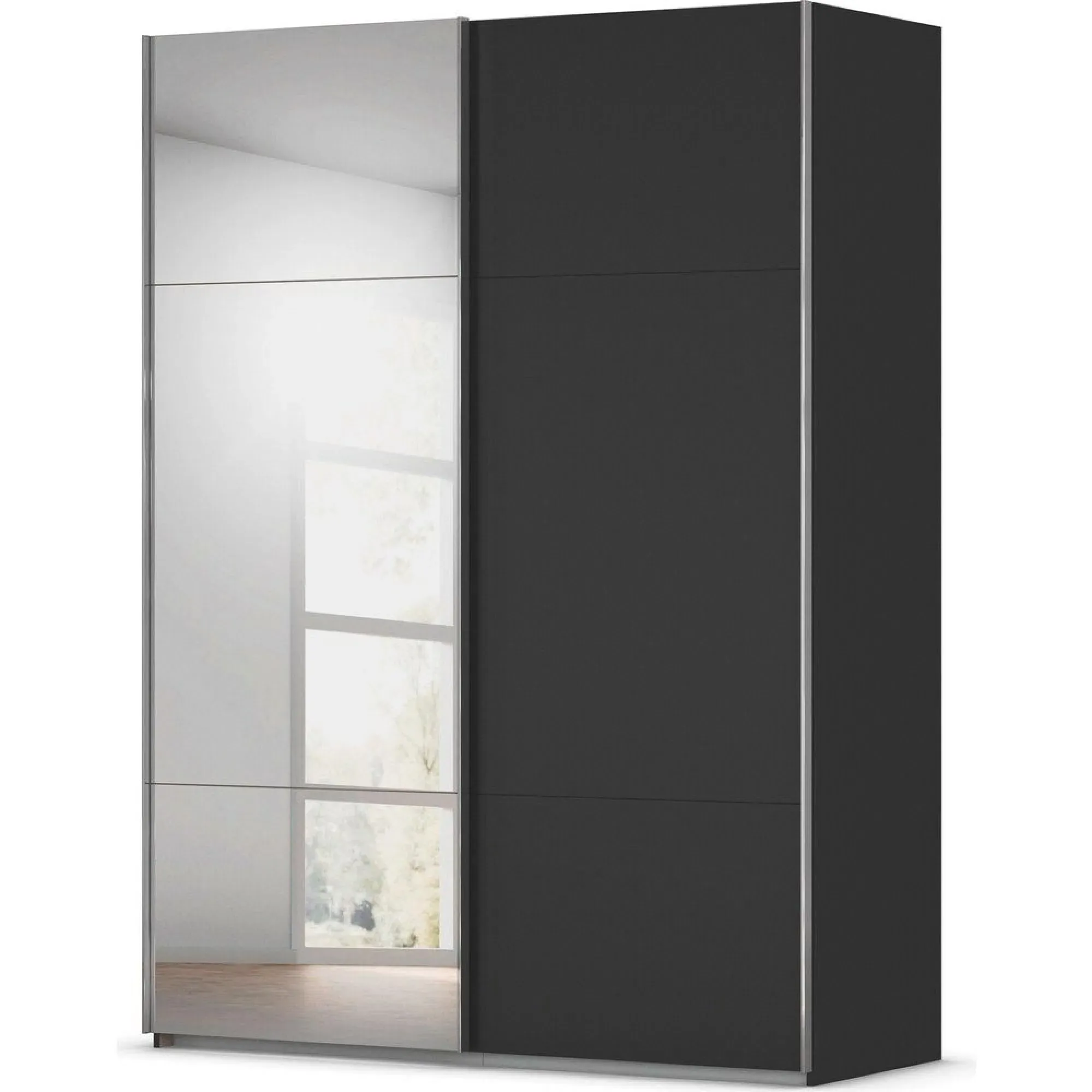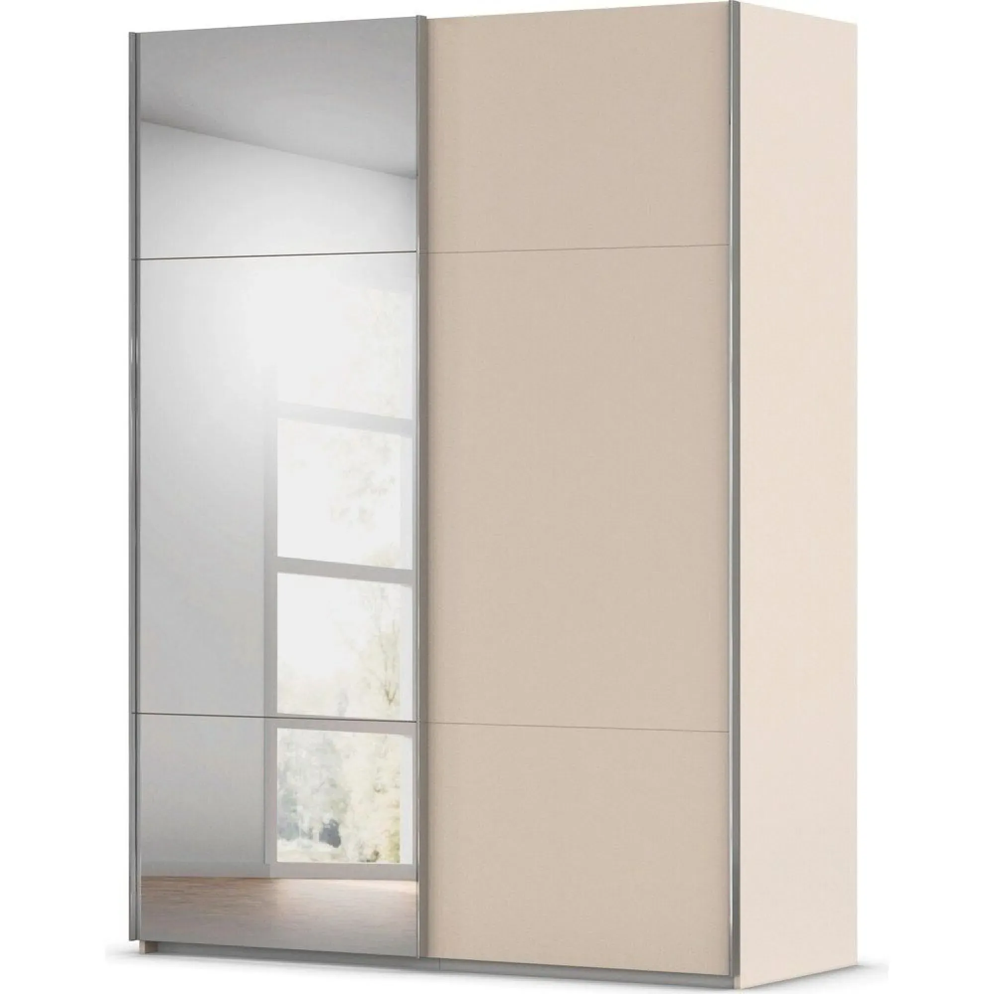 Rauch Contido 162cm 2 Door Sliding Mirror Wardrobe with Extras - Silk Grey - 0KW0/ A815A, available to buy online or at Choice Furniture Superstore UK on stockist sale price. Get volume - discount with fast and Free Delivery.