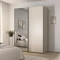 The Contido wardrobe combines practical storage with its 2-door sliding mirror design and additional extras. Its mirrored doors provide visual space enhancement while offering convenient access to your belongings. The sliding mechanism saves floor space, and the silk grey finish adds a refined touch to the bedroom.