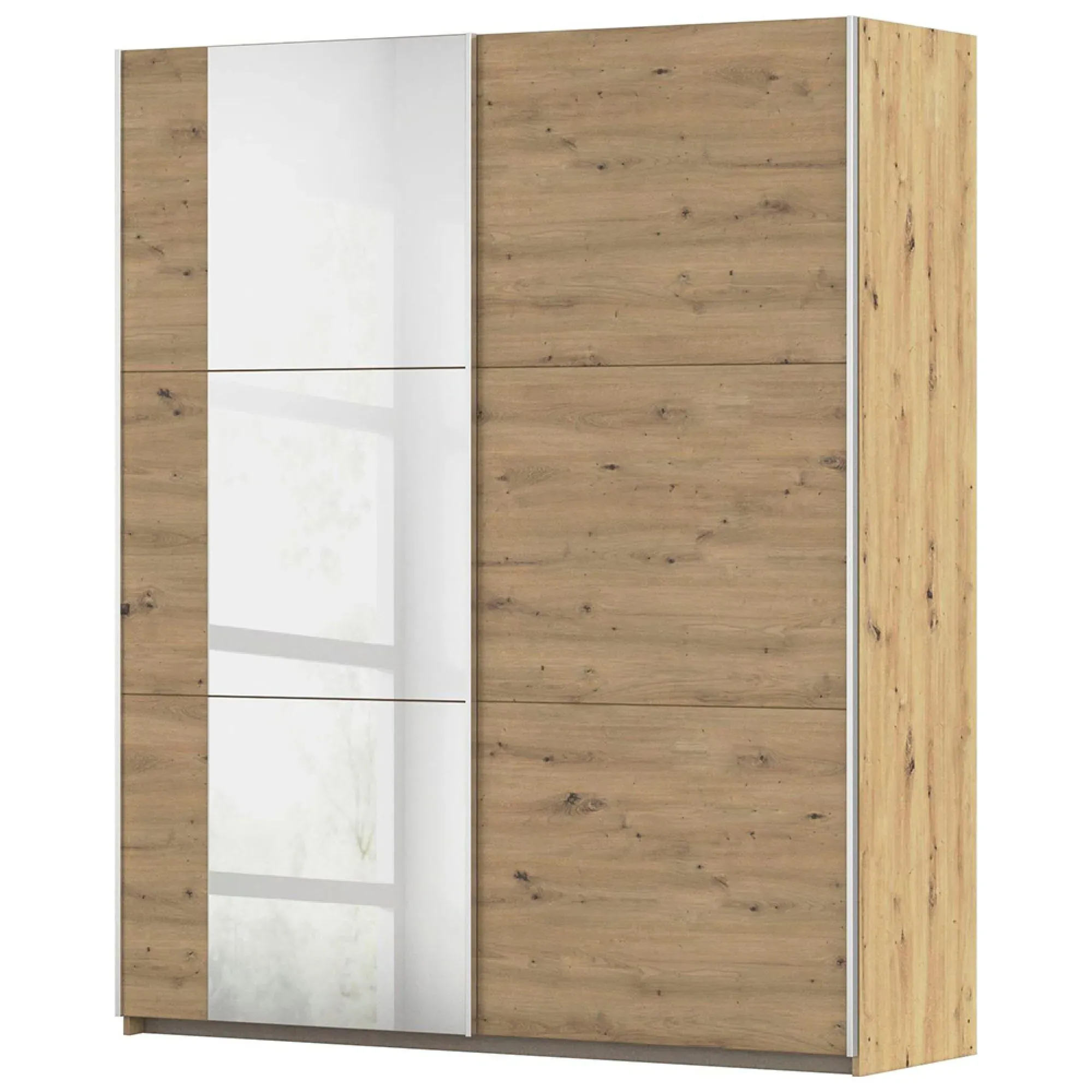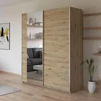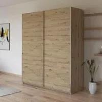 The Kronach wardrobe offers ample storage with its 175cm width and sliding door design. The metallic dark grey finish provides a sophisticated appearance, while the two-door configuration maximizes accessibility. Its sliding mechanism saves space in the room, and the sturdy construction ensures long-lasting durability.