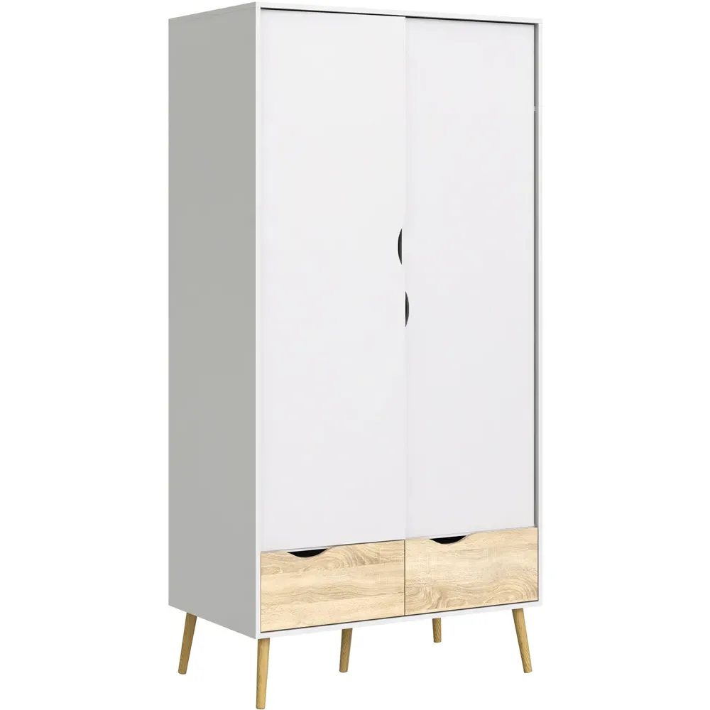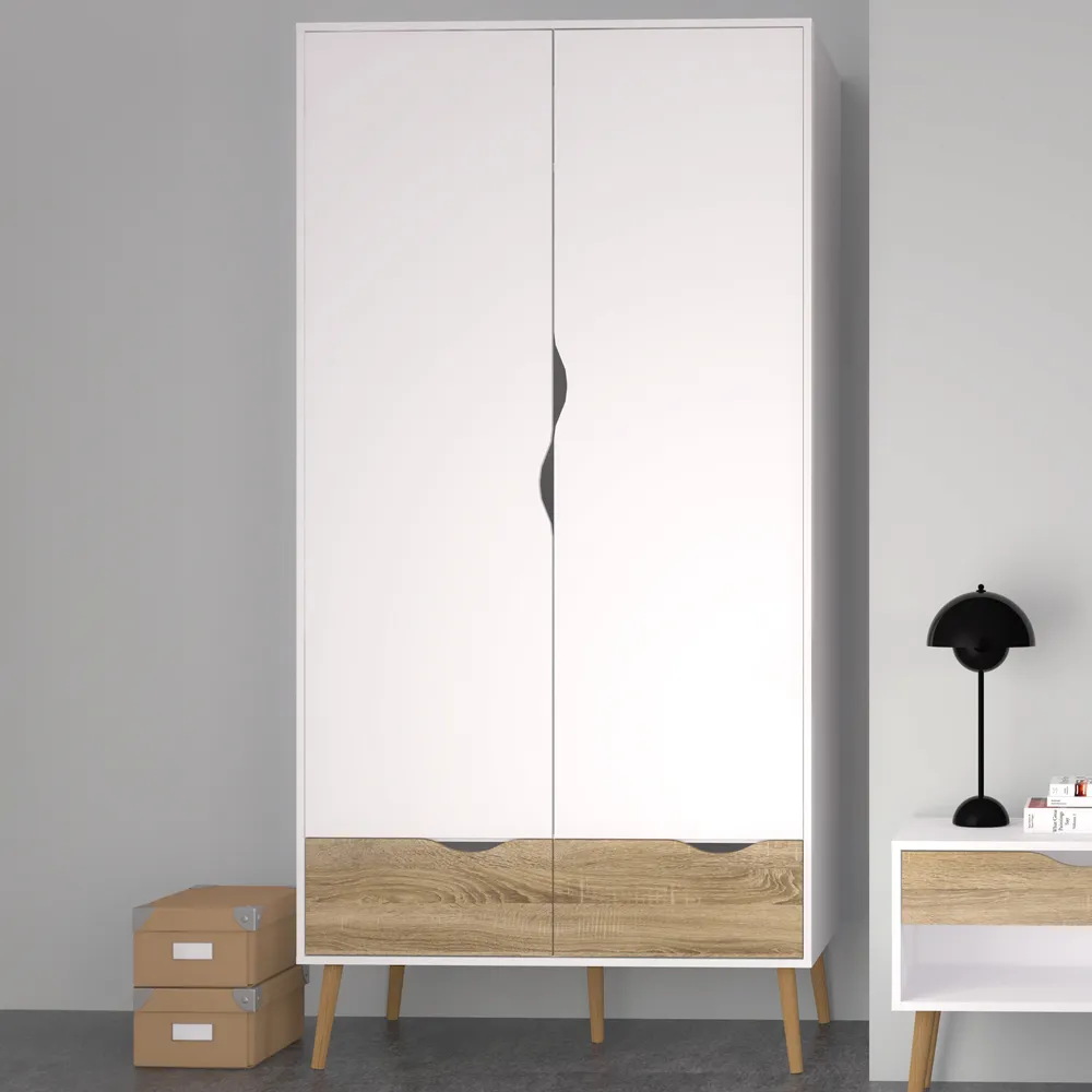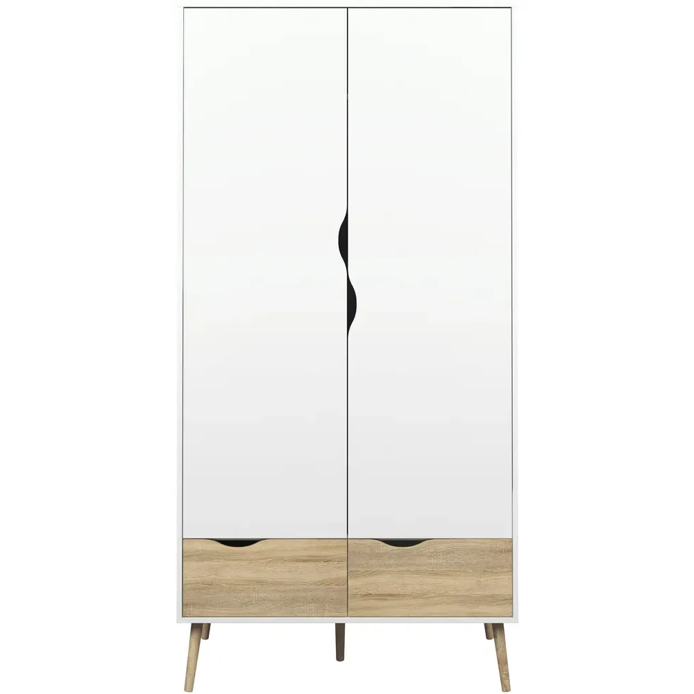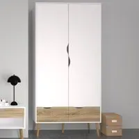 Make a charming addition to your home decor with the Florence 2 Door 2 Drawer Black and Oak Wardrobe. This classy wardrobe has a soothing look and feel with a solid design for durability and longevity. It features a two-door design with a hanging rail section and a shelf with two drawers which provide ample storage space. It is crafted using a high-quality laminated board with sturdy tapered legs for stability and support. The solid laminated board is resistant to scratches, damage, moisture and high temperatures. This beautiful wardrobe is suitable for all types of contemporary and traditional interior spaces.