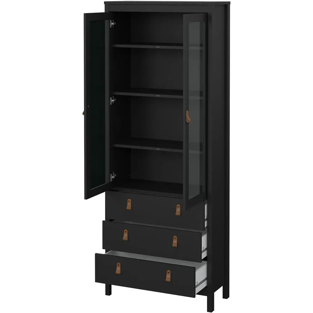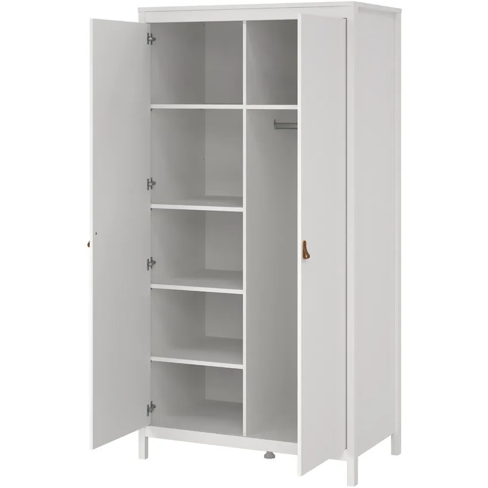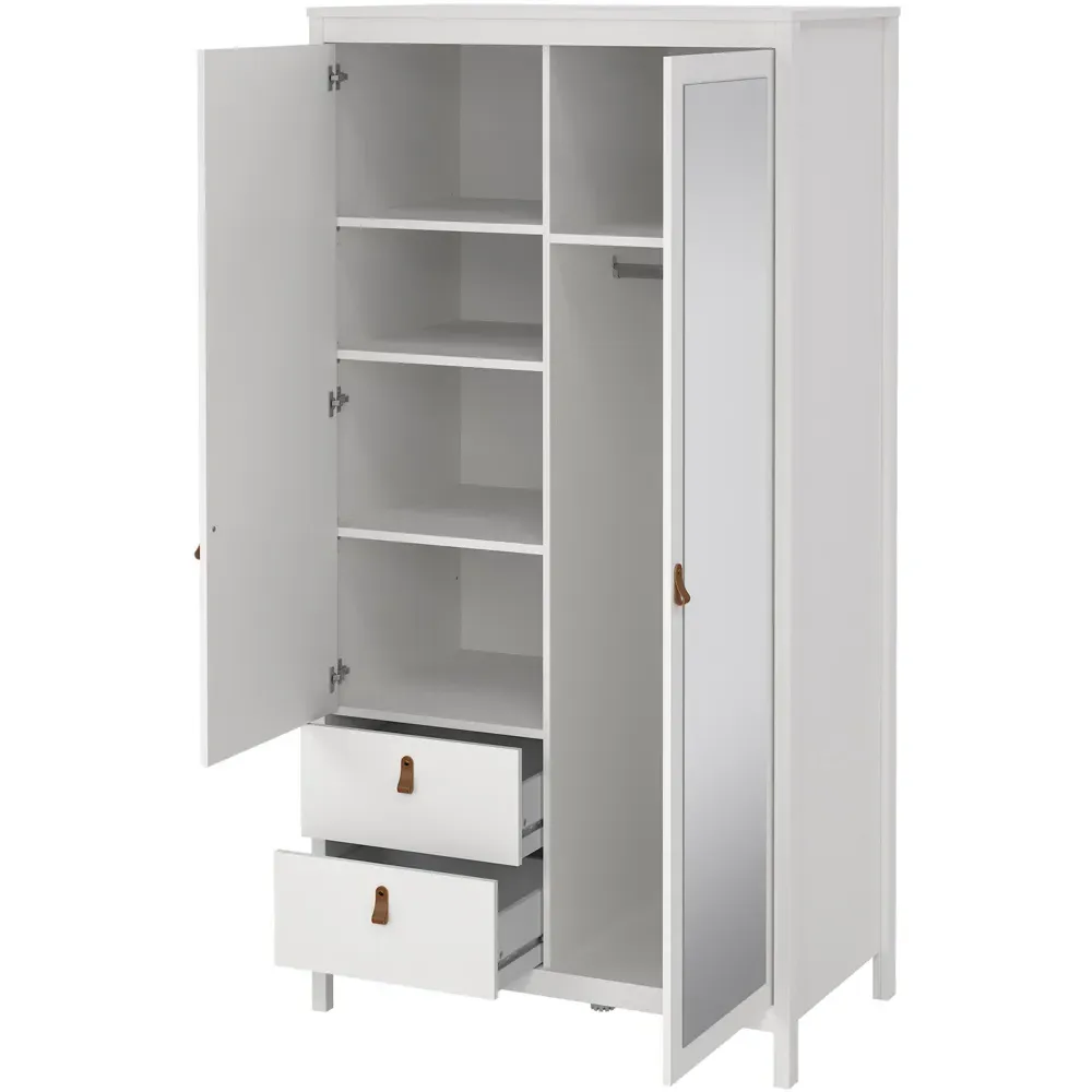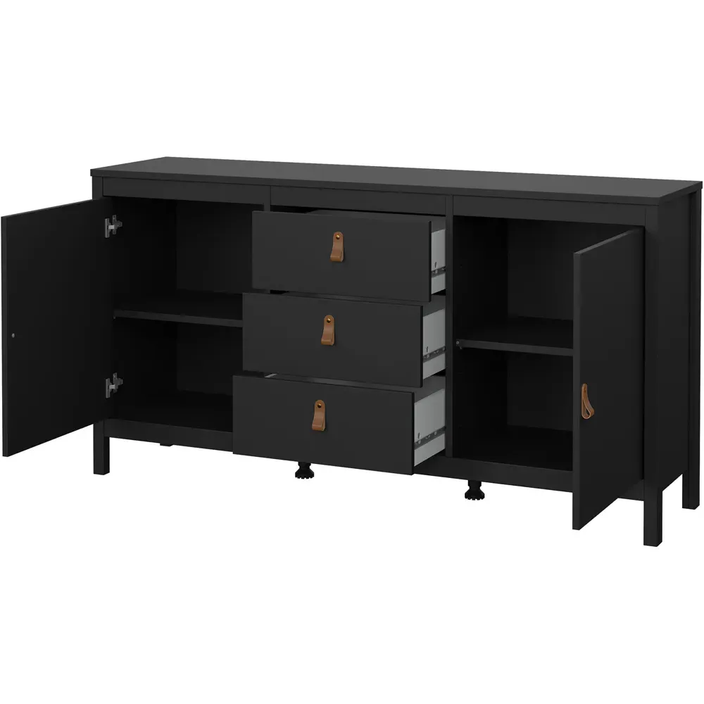 Upgrade your home interiors with the Barcelona Sideboard. It is a practical storage solution with a contemporary design that will complement most interior spaces. This white sideboard is crafted using PEFC certified sustainable wood. It features a two-door design with two storage compartments and one drawer, complete with uniquely designed brown leather tab handles for easy accessibility. It also features a high-quality laminated board resistant to scratches, damage, moisture and high temperature.