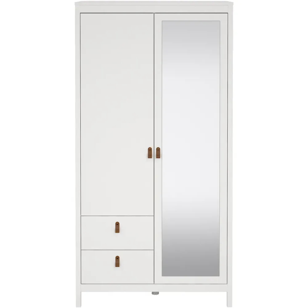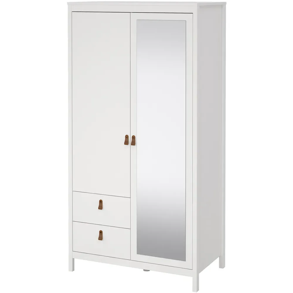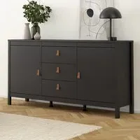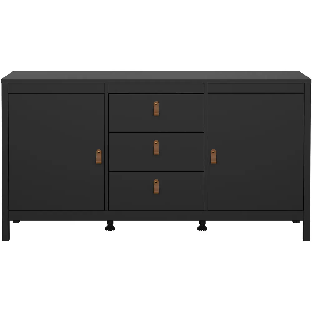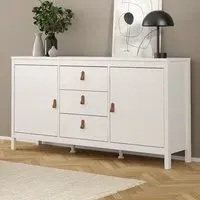 The Florence Barcelona Sideboard combines practical storage with its two-door design and single drawer configuration. Its white finish provides clean versatility, while the brown leather tab handles offer unique accessibility. The sideboard features two storage compartments with scratch, moisture and temperature resistant construction. Crafted from PEFC certified sustainable wood with high-quality laminated board.