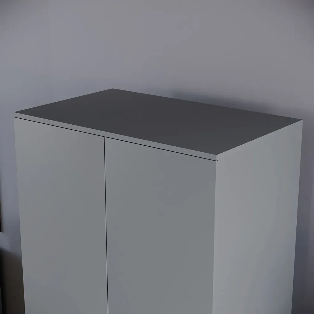 The Riano 2 Door 2 Drawer Wardrobe provides comprehensive storage with its dual-function design and durable MDF construction. It features spacious hanging space behind two doors for wrinkle-free clothing storage, while two pull-out drawers offer additional space for folded garments and accessories. The paper veneer and melamine finish ensures longevity, and the sturdy build supports organized bedroom storage with smooth-operating drawers and doors.