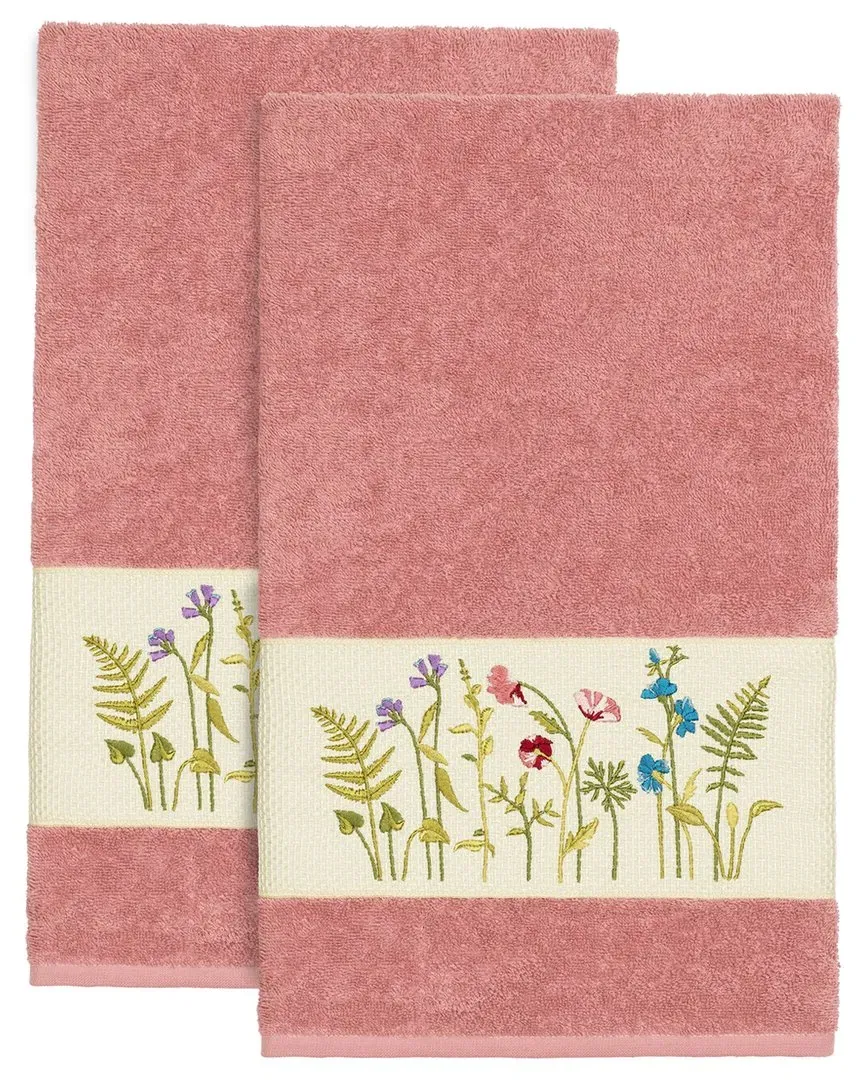 The Serenity washcloth set offers luxurious comfort with its embellished design and 100% Turkish cotton construction. Its premium cotton fibers provide exceptional absorbency and softness, while the embellished detailing adds an elegant touch. The 2-piece set includes matching washcloths that ensure long-lasting quality with proper care. W33 x H33 cm each.