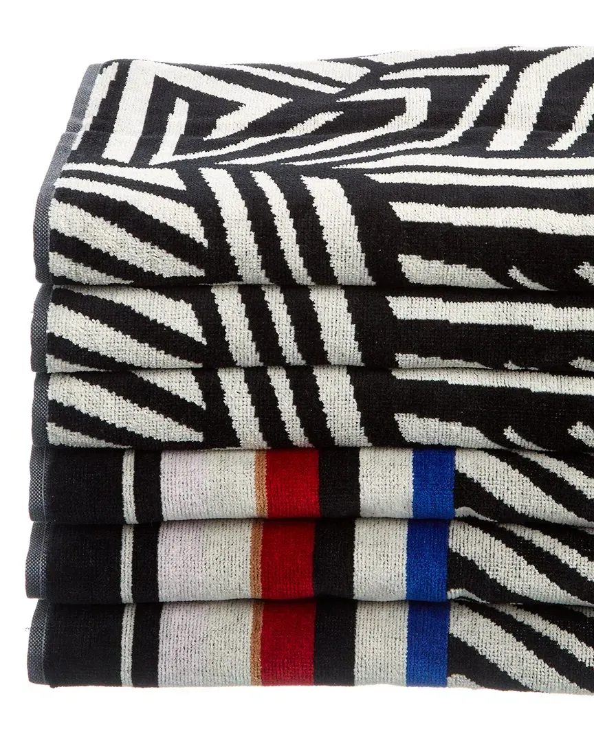 About the brand: Distinct patterns and bold colors, done in Italian luxury. Calista Set of 6 Hand Towels in multicolor Design details: Impress your guests with Missoni Home's 'Calista' towels. Both styles in this set of two are made from soft, absorbing cotton-terry and patterned with a bold geometric motif that feels modern and fresh. Measures 16in x 27in Fabric: 100% cotton Care instructions: Ironing maximum temperature 150C; Do not dry clean; Tumble drying at lower temperature; Wash max 40C; Do not bleach Made in Portugal Contents of Set: Set of 6 Hand Towels