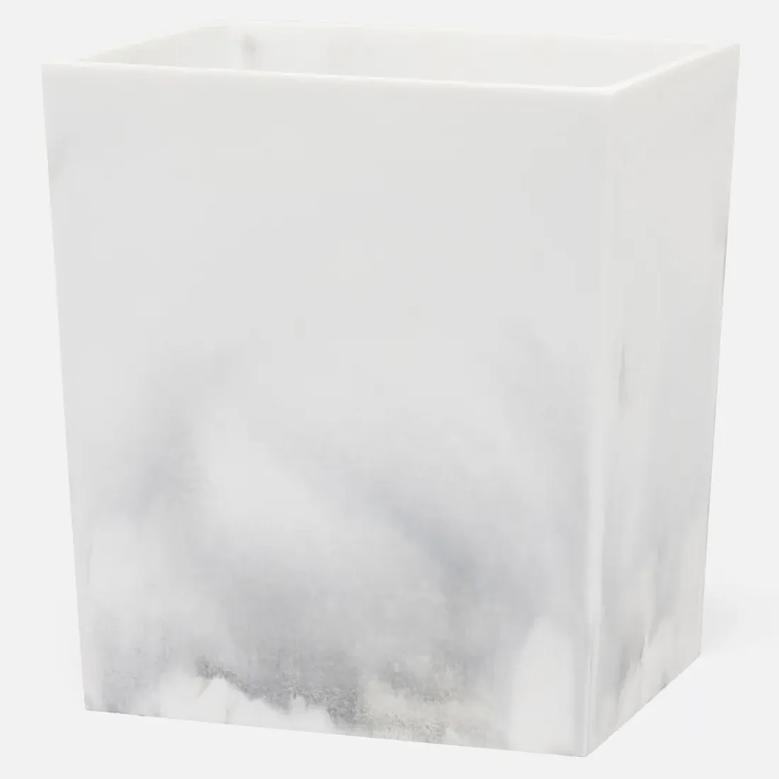 1 inches high x 4 inches wide x 6 inches deep. Constructed from resin. Finished in swirled white and grey.