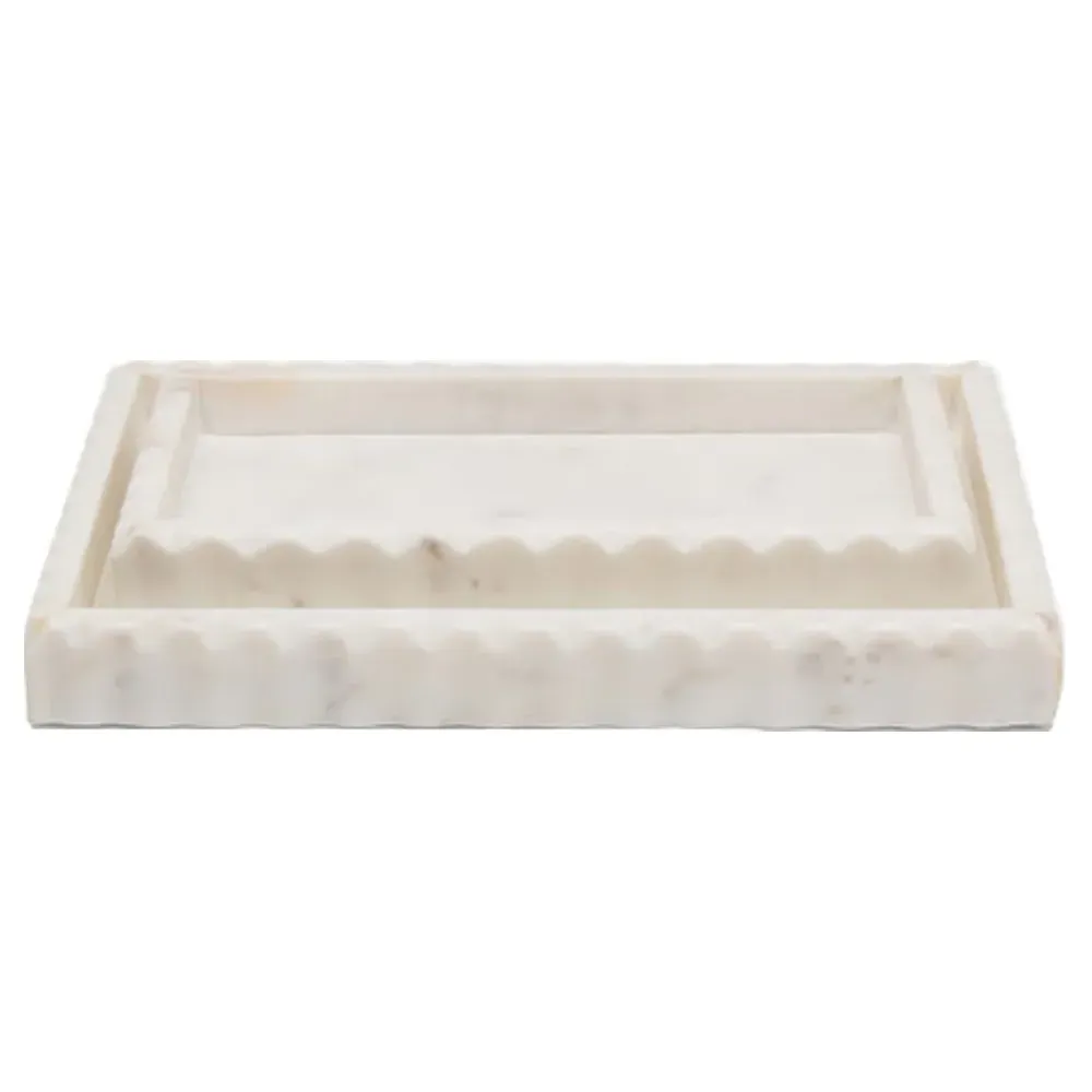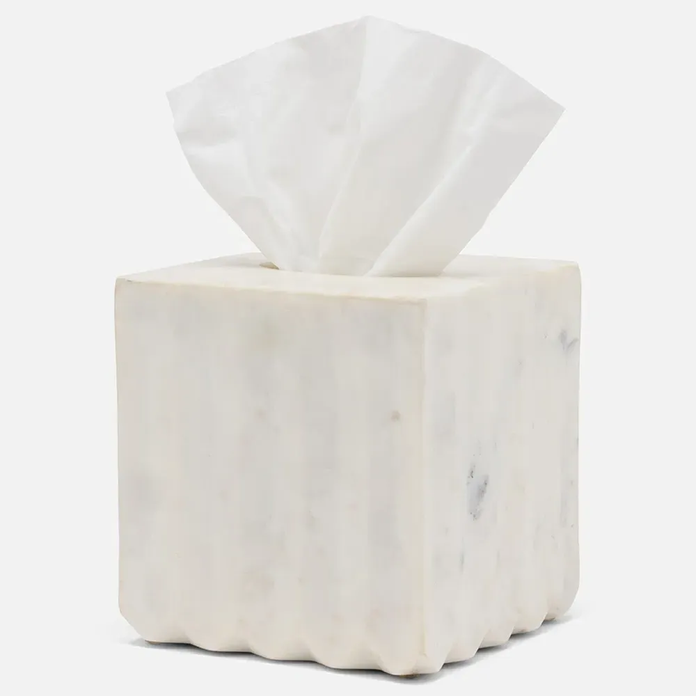 The Proviso Soap Dish provides essential bathroom storage with its fluted marble construction, finished in white. Its elongated design accommodates standard soap bars, while the marble material adds water resistance and durability. The dish suits sink-side placement and the solid construction ensures stable positioning. W11.4 x D16.8 x H2.5 cm