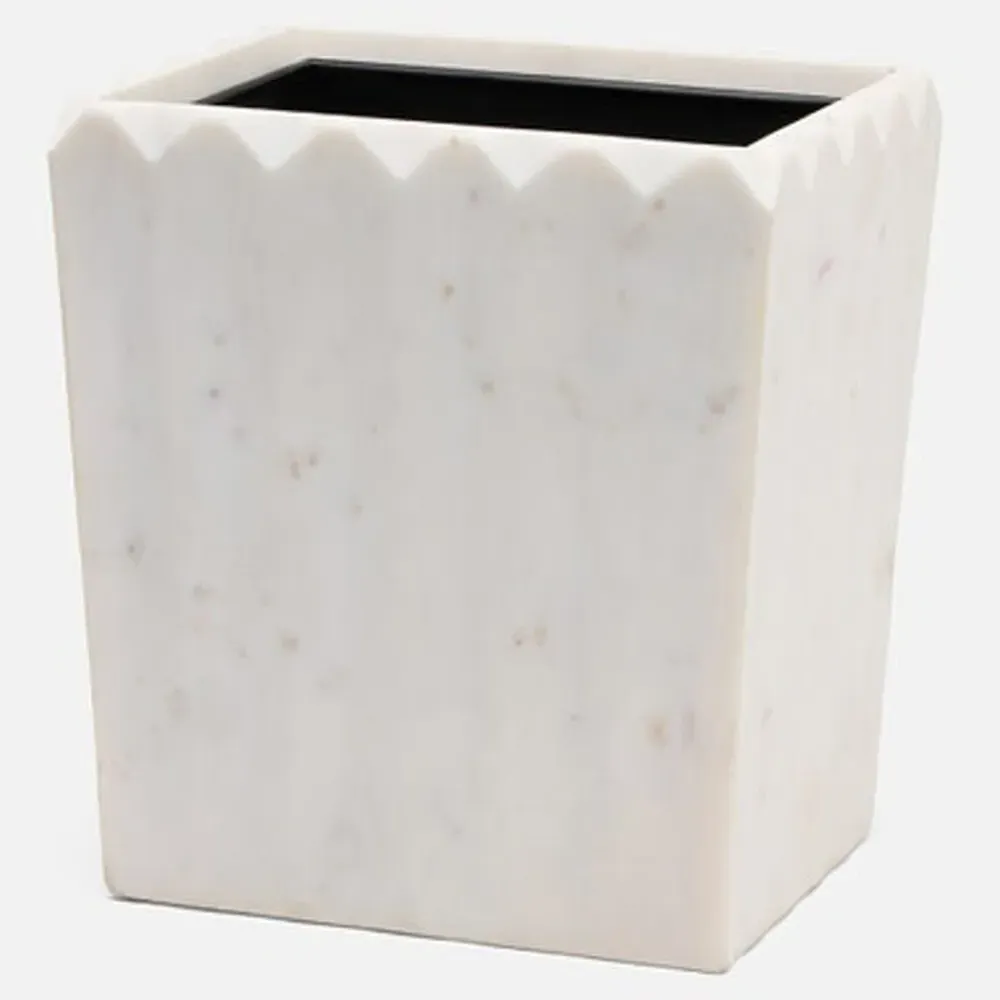 1 inch high x 4.5 inches wide x 6.6 inches deep. Constructed from marble. Finished in white.