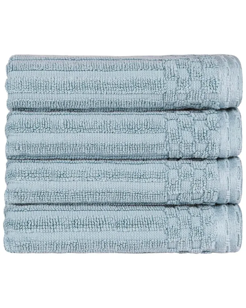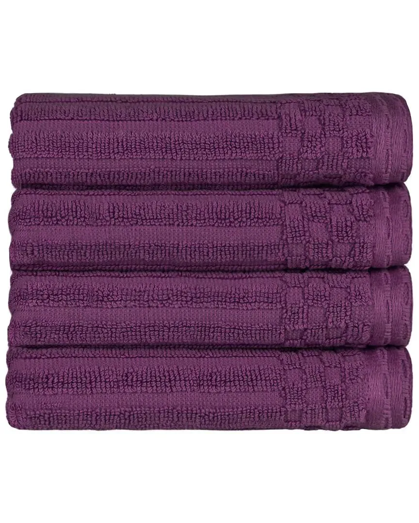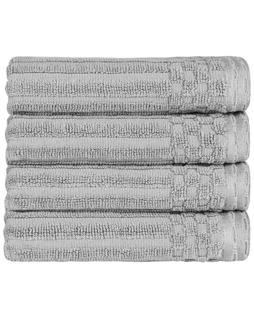 The Cotton Hand Towel Set combines ultra-absorbent design with solid and checkered border detailing. Its premium cotton construction provides natural strength and softness, while the thick, plush texture ensures quick drying after bathing. The set includes four hand towels with ribbed pattern accents for enhanced absorption. Machine washable for easy care and maintenance. W41 x L71 cm per towel.