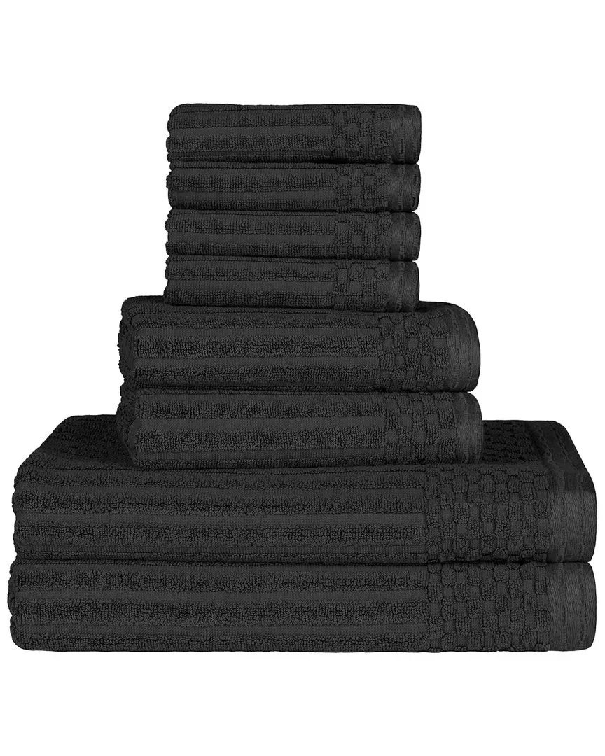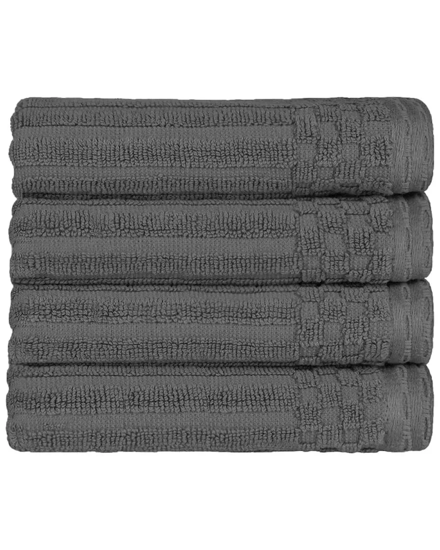 About the brand: Luxurious staples for the bedroom and bathroom. Color/pattern: black Design details: create a welcoming, spa-like space in your bathroom with the cotton highly absorbent hand towel solid and checkered border towel set. this luxurious towel set will tie together any bathroom decor style including; modern, casual, or traditional. the solid and ribbed pattern will seamlessly elevate the mood of your space. the premium cotton construction makes this towel naturally strong and soft, with an ultra-absorbent design. each towel is thick, ultra-plush, and highly absorbent to help you dry quickly after a shower or bath. these bathing essentials are available in a variety of vibrant solid colors to match your unique bathroom decor. Measures Each hand towel measures 16in wide x 28in long cotton Machine washable. For drying, tumble dry low and remove promptly from the dryer. Always follow care label instructions for best results. Imported Contents of Set: Four (4) Hand Towels