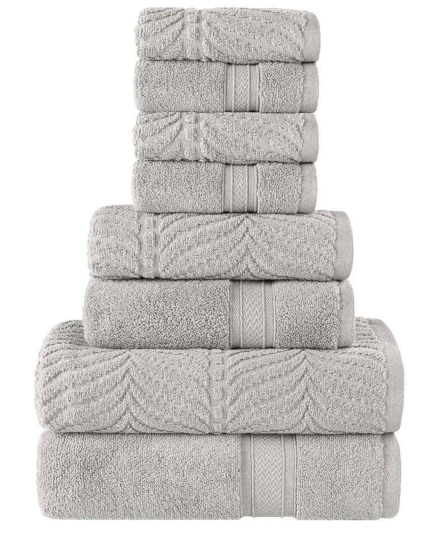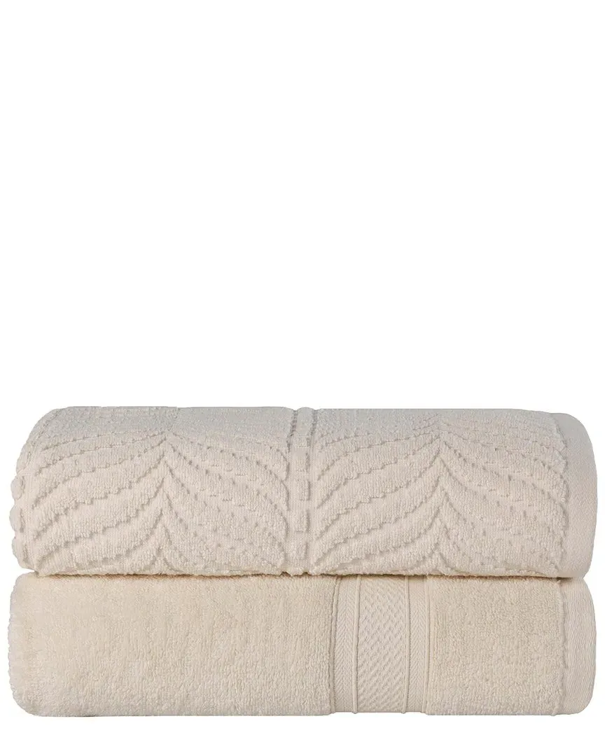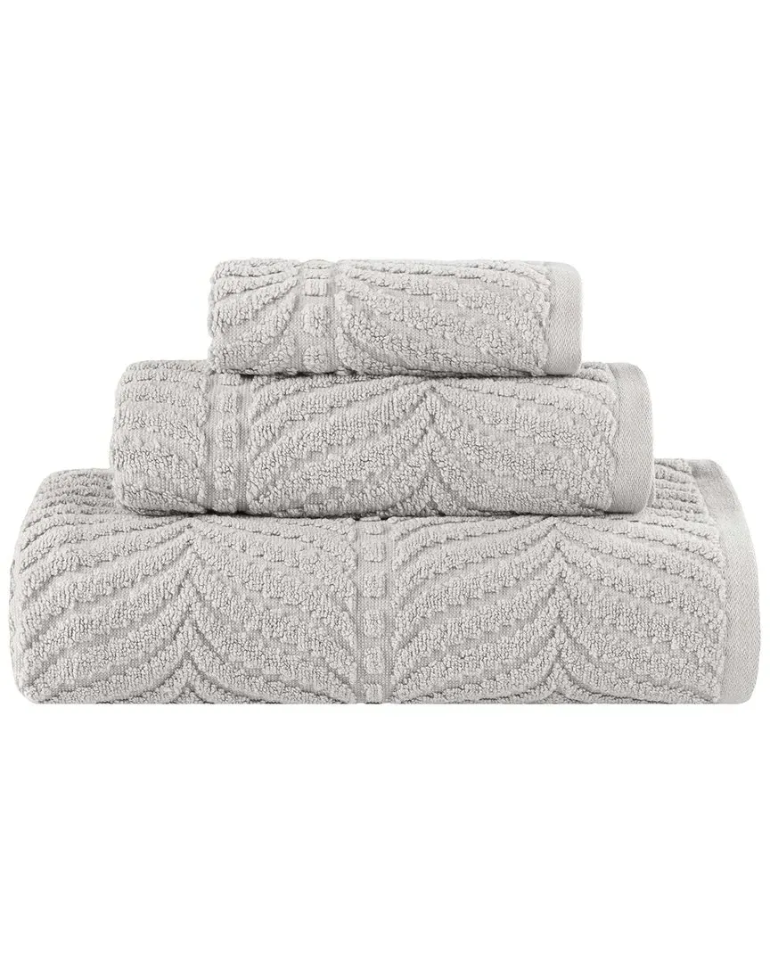 About the brand: Luxurious staples for the bedroom and bathroom. Superior Zero Twist Cotton Elegant Soft Absorbent 3 Piece Solid Towel Set, in ivory Design details: Experience ultimate comfort as you immerse yourself in the plush embrace of the Zero Twist Cotton Elegant Chevron Soft Absorbent 3 Piece Jacquard Towel Set. These towels are crafted from Cotton for natural softness and impressive absorbency. The zero twist technique boasts smooth loops to that offer impressive performance and longevity. Finished with secure hemmed edges to avoid fraying and a durable single-ply, these towels can withstand countless washes and last you years to come. For added style, each piece in this bundle features an elegant chevron pattern and a hanging loop for effortless drying. This set includes 1 Face Towel/Washcloth, 1 Hand Towel, and 1 Bath Towel to complete your bathroom essentials. Measurements: face towel/washcloth measures 13in x 13in, Each hand towel measures 16in x 30in, Each bath towel measures 30in x 54in Fabric: 100% cotton Machine wash Imported Contents of Set: One Face Towel/Washcloth One Hand Towel One Bath Towel