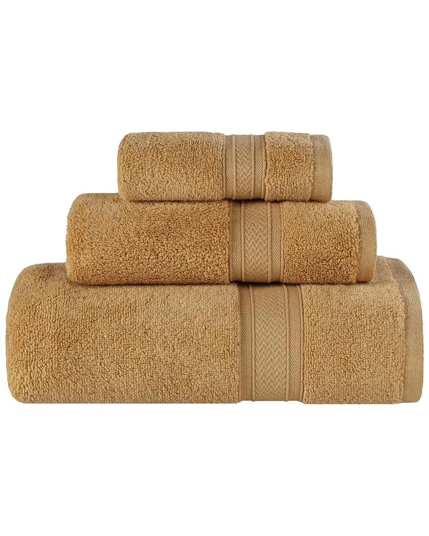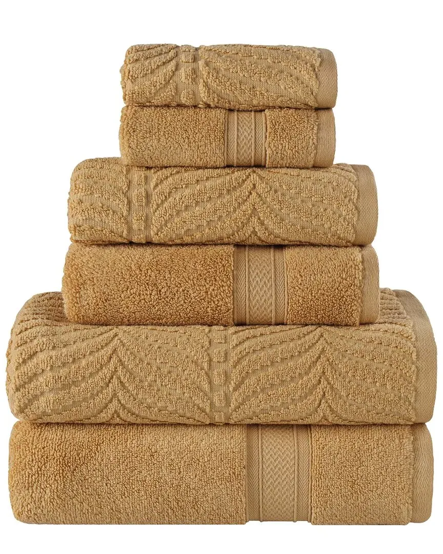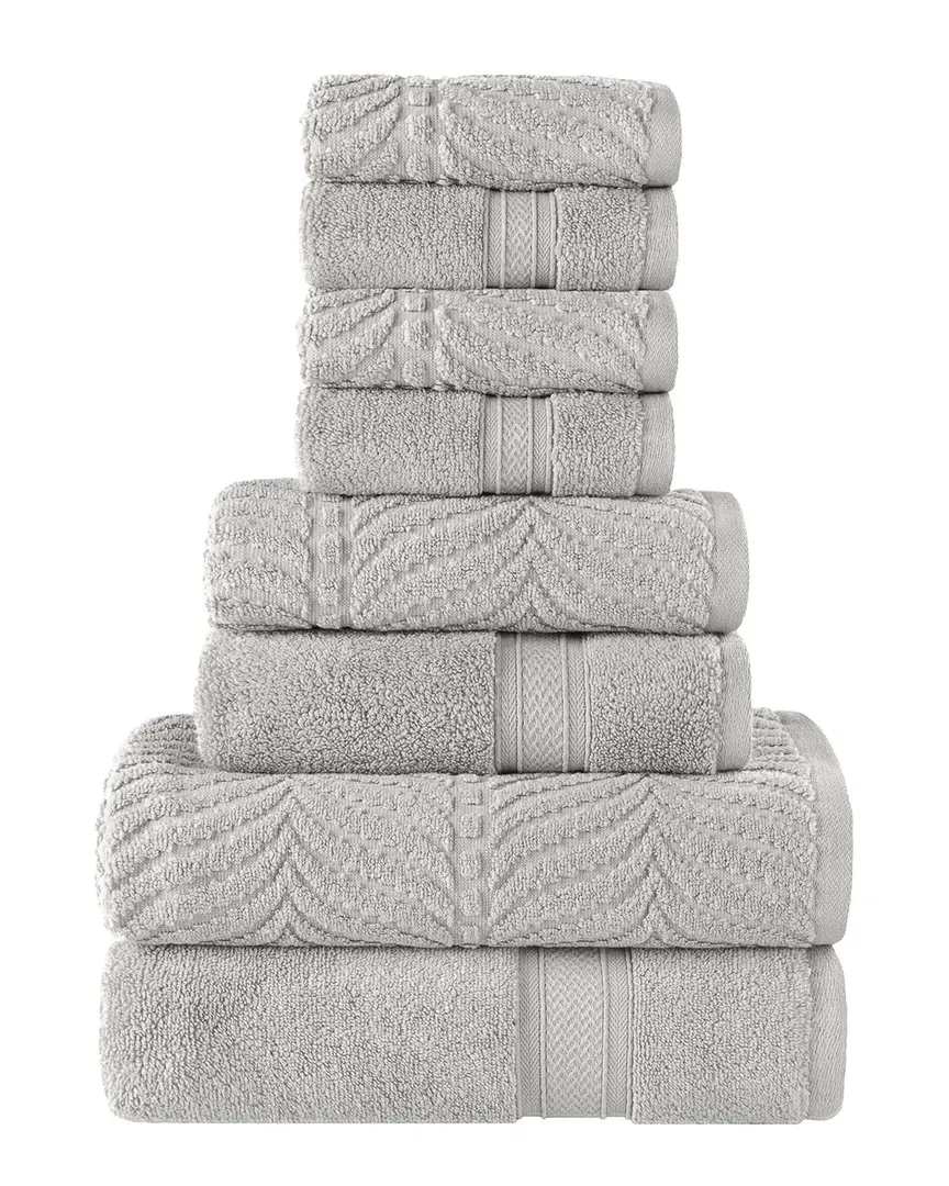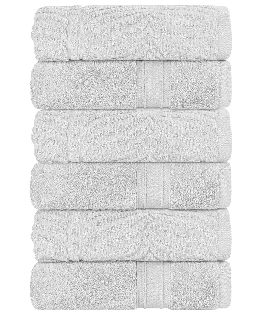 About the brand: Luxurious staples for the bedroom and bathroom. Superior Zero Twist Cotton Elegant Soft Absorbent 3 Piece Solid Towel Set, in ivory Design details: Experience ultimate comfort as you immerse yourself in the plush embrace of the Zero Twist Cotton Elegant Chevron Soft Absorbent 3 Piece Jacquard Towel Set. These towels are crafted from Cotton for natural softness and impressive absorbency. The zero twist technique boasts smooth loops to that offer impressive performance and longevity. Finished with secure hemmed edges to avoid fraying and a durable single-ply, these towels can withstand countless washes and last you years to come. For added style, each piece in this bundle features an elegant chevron pattern and a hanging loop for effortless drying. This set includes 1 Face Towel/Washcloth, 1 Hand Towel, and 1 Bath Towel to complete your bathroom essentials. Measurements: face towel/washcloth measures 13in x 13in, Each hand towel measures 16in x 30in, Each bath towel measures 30in x 54in Fabric: 100% cotton Machine wash Imported Contents of Set: One Face Towel/Washcloth One Hand Towel One Bath Towel