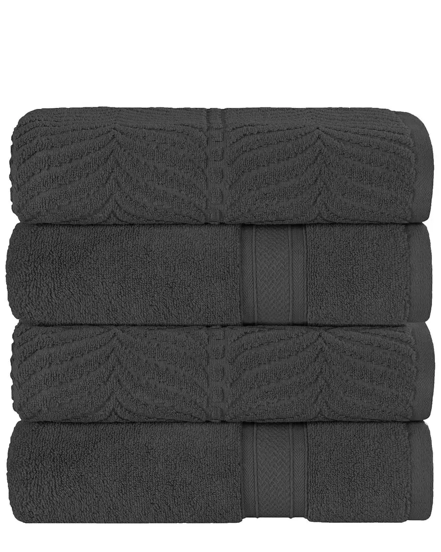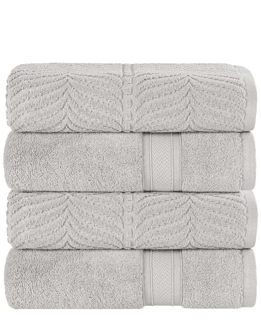 The Zero Twist Cotton Towel Set offers natural softness and impressive absorbency with its 100% cotton construction. The zero twist technique features smooth loops that provide enhanced performance and longevity, while secure hemmed edges prevent fraying. Each towel includes a hanging loop for convenient drying with an elegant chevron pattern. The set includes 1 face towel (13in x 13in), 1 hand towel (16in x 30in), and 1 bath towel (30in x 54in).