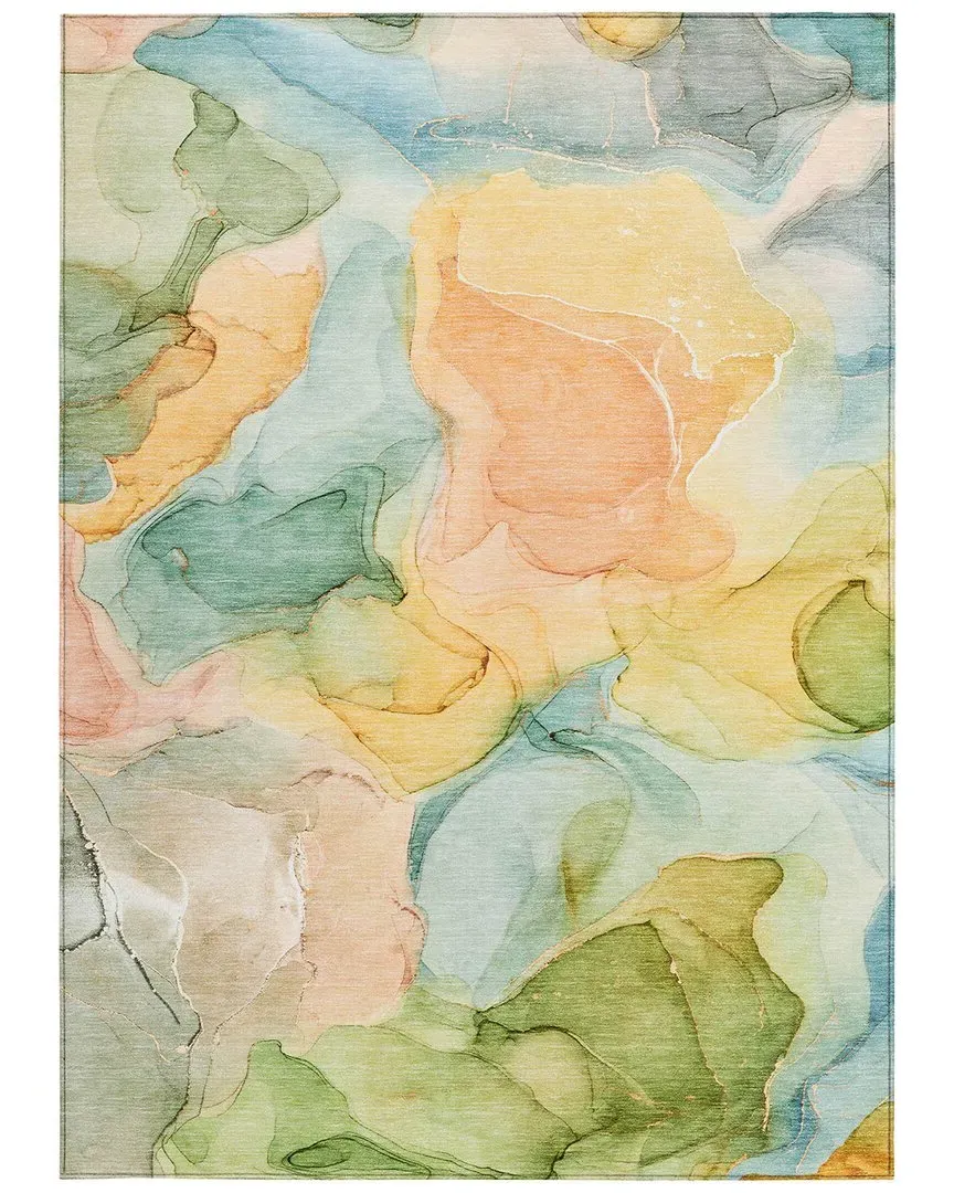 The Chantille rug displays transitional floral design with irregular flower petals in bold tonal colors for unified aesthetics. Its ultra-thin construction features built-in non-skid backing, removing the need for an additional rug pad. The UV-stabilized polyester material withstands both indoor and outdoor conditions, while the machine-washable design offers easy care for family and pet-friendly use.