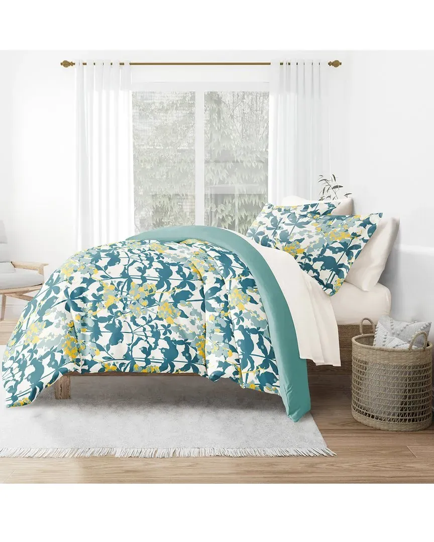 Color/pattern: light blue Fabric: 100% 95 gsm microfiber polyester shell with 180 gsm down alternative filling Easy Care: Machine wash cold with similar colors. Do not add softener or bleach. Do not dry clean. Tumble dry low; remove promptly. Imported Contents of set: 1 duvet cover 1 Comforter 1-2 pillow shams based on size selection 1 flat sheet 1 fitted sheet 1-2 pillowcases based on size selection Choose from the following: California King 96in x 108in Full 90in x 94in King 108in x 96in Queen 90in x 94in Twin 70in x 90in Twin XL 70in x 90in
