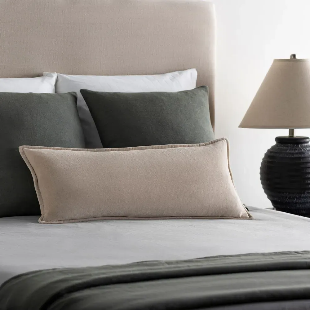 With a true modern classic style, the Anika lumbar pillow brings additional comfort to any sofa, chair, or bed. Crafted from cotton, its sage green velvety fabric is soft to the touch. A subtle flange edge completes the design. 19 inches high x 13 inches wide. Constructed from 100% cotton. Finished in sage. Down insert included.