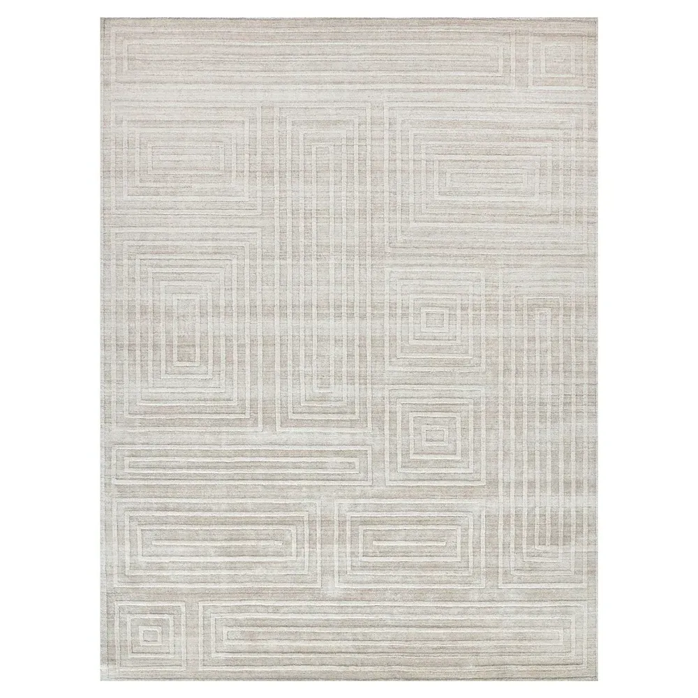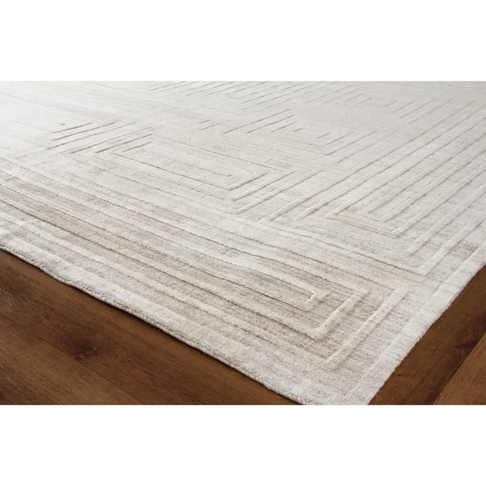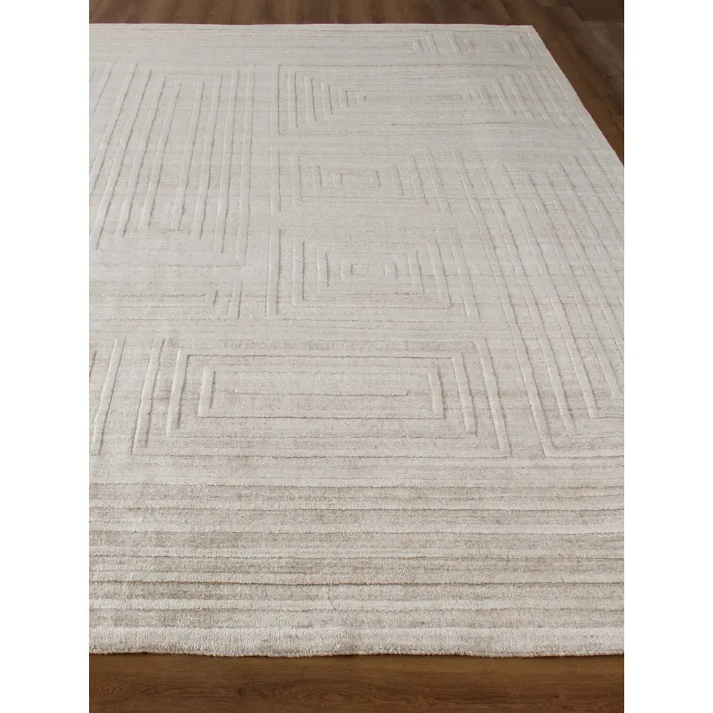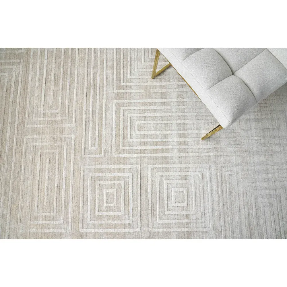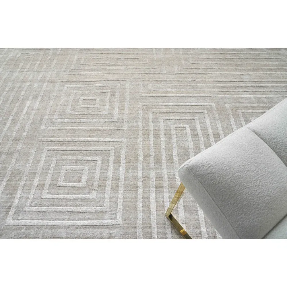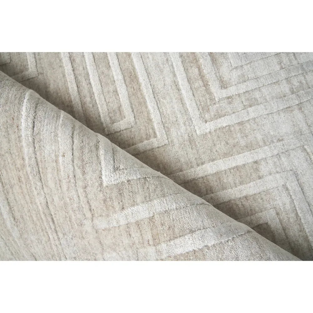 <b>Rug swatch available! To order, choose SAMPLE in the size drop-down.</b> 1 foot x 1 foot 6 inches. Pile: 0.4 inches high. Constructed from New Zealand wool and bamboo silk. Finished in beige. Hand Loomed.