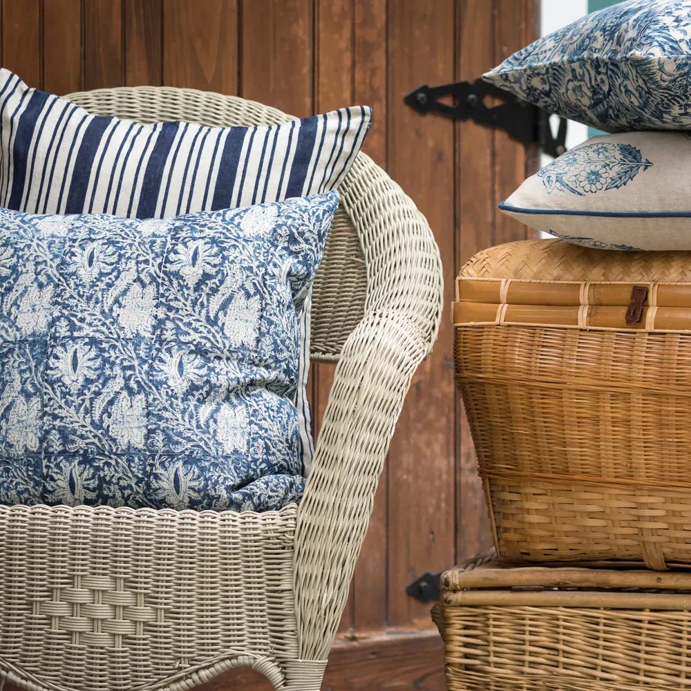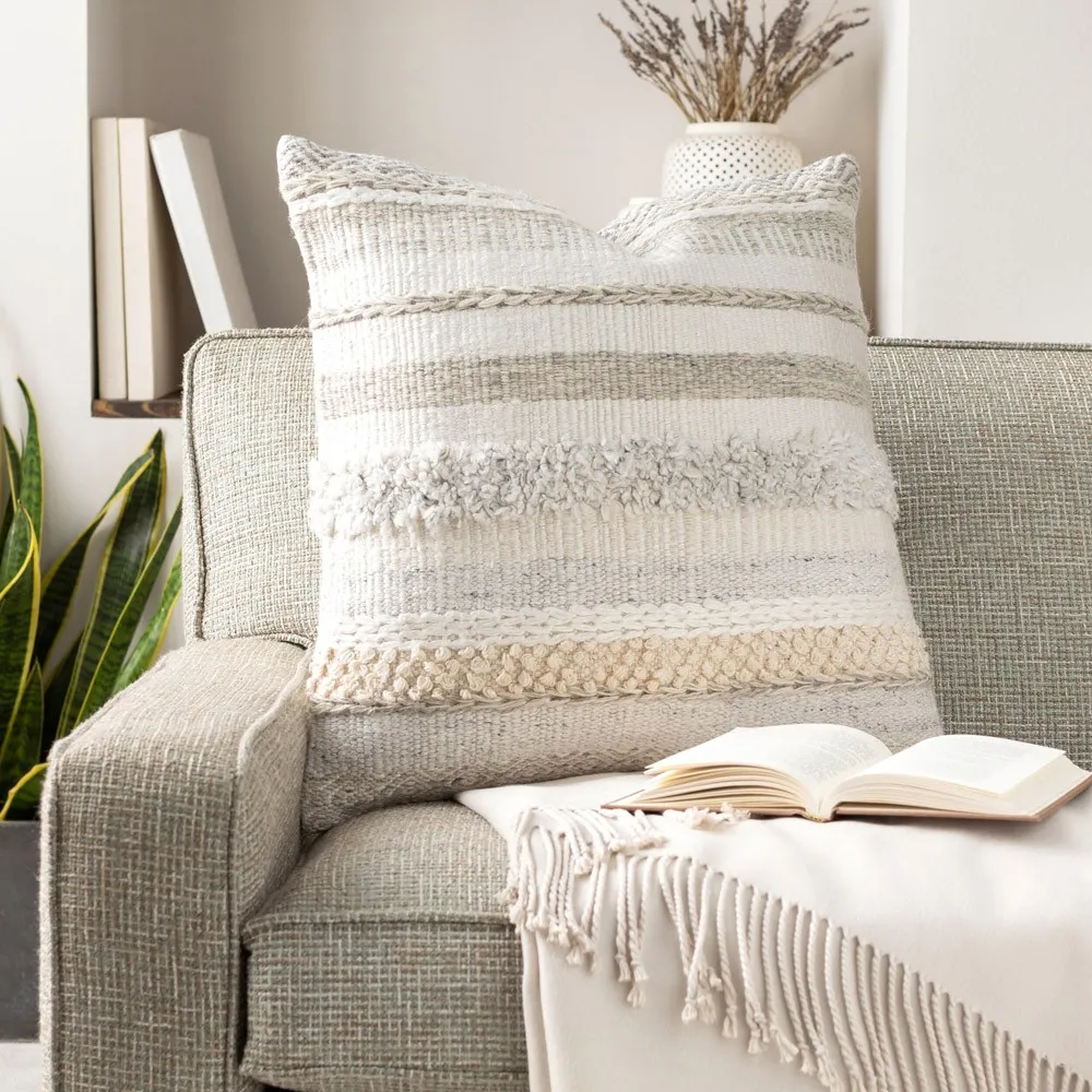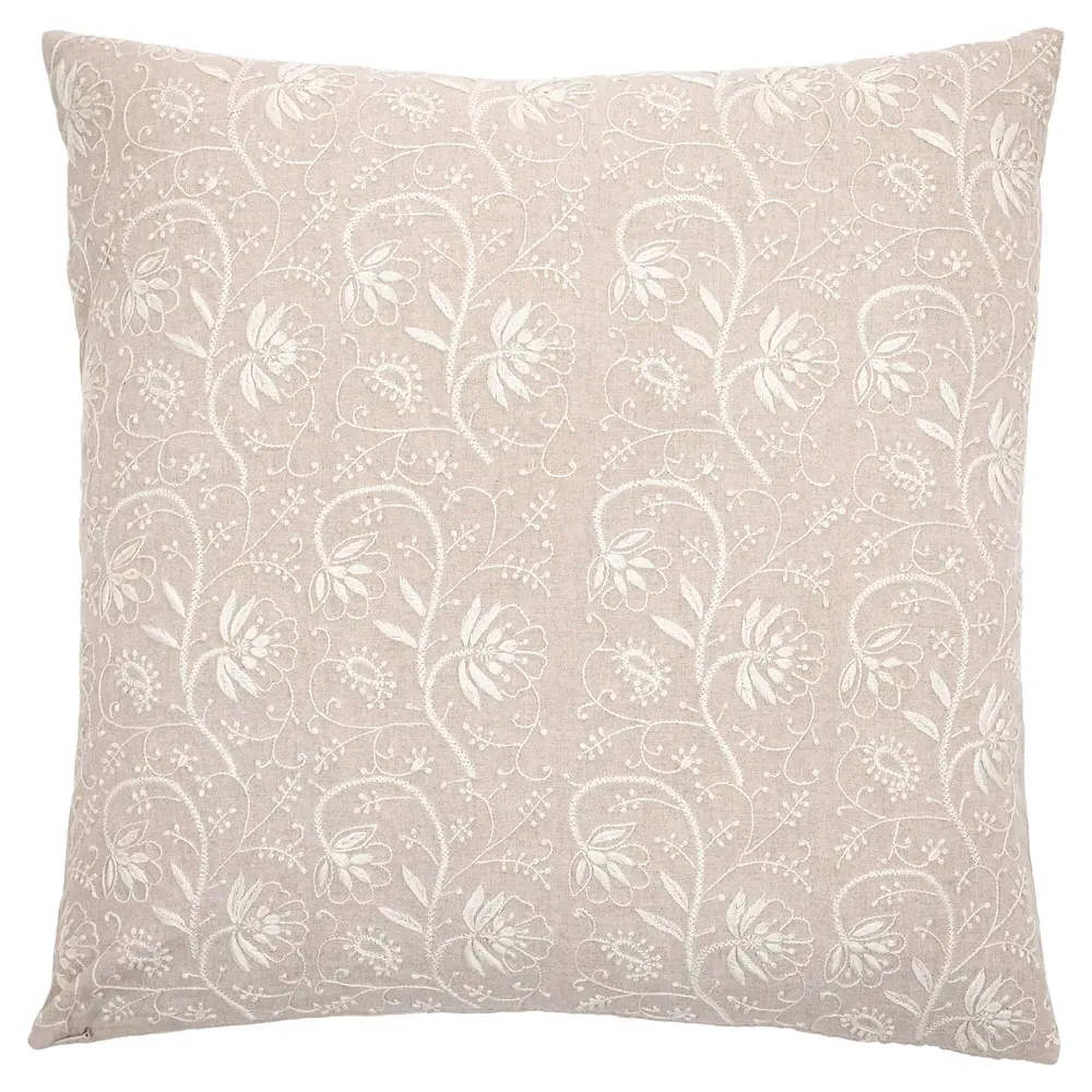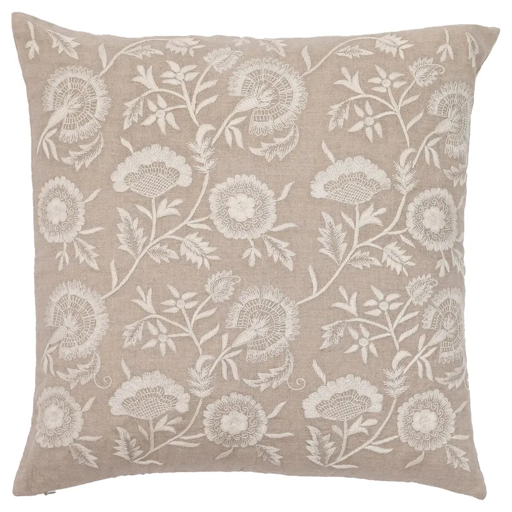 The Beline throw pillow combines style with its linen and cotton construction, featuring fog-colored floral upholstery. Its square design suits various decor styles, while the natural fiber blend provides comfort and durability. W20 x D6 x H20 cm.