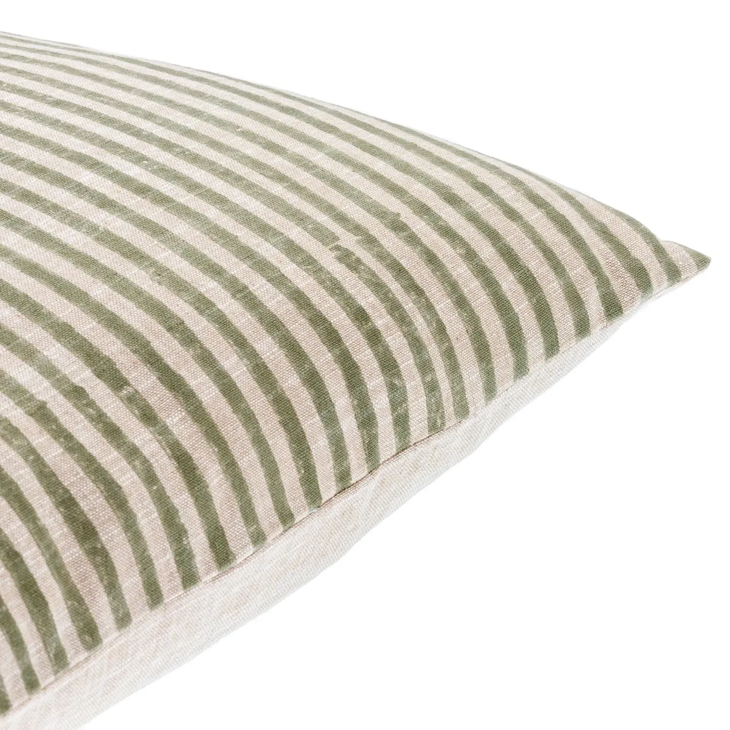 20 inches high x 20 inches wide x 6 inches deep. Constructed from linen and cotton. Upholstered in fog.