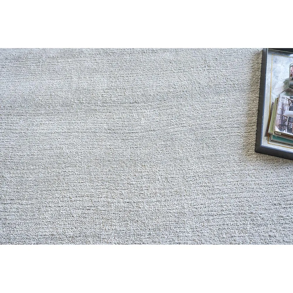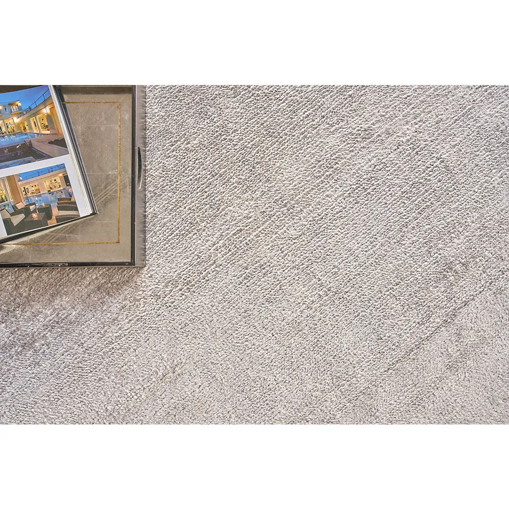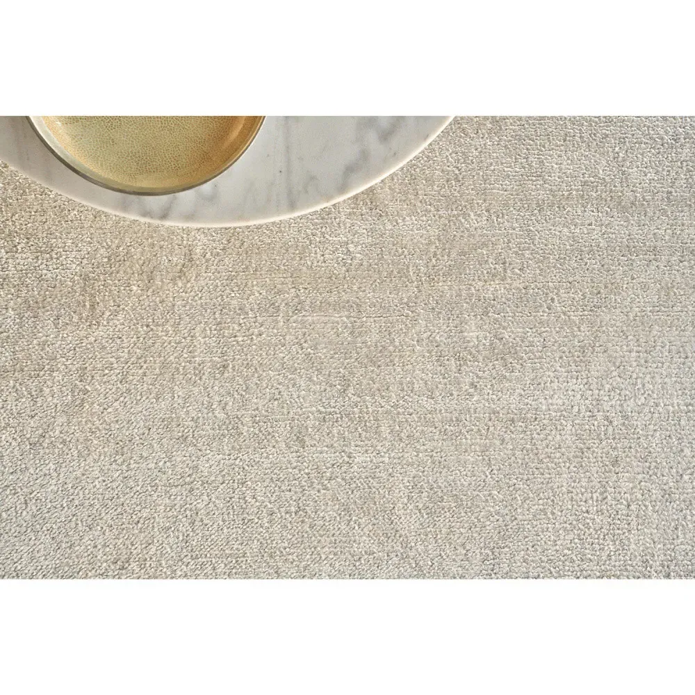 The Celeste rug sample offers luxurious texture with its hand-knotted construction, crafted from bamboo silk and mohair. Its 1-inch pile height provides plush comfort underfoot, while the light beige finish adds warmth to any space. The hand-knotted technique ensures durability and unique character in each piece. W30 x D46 cm.