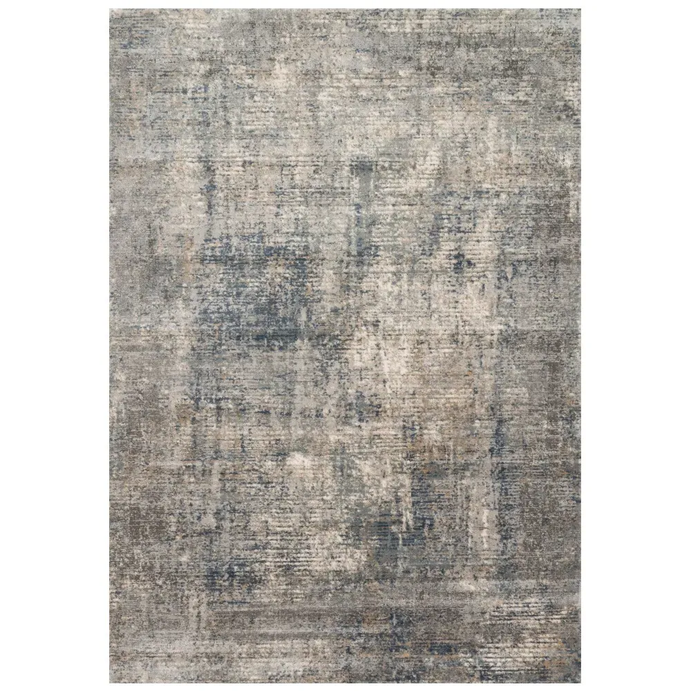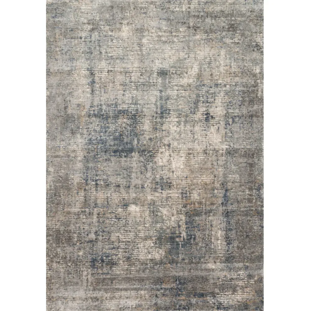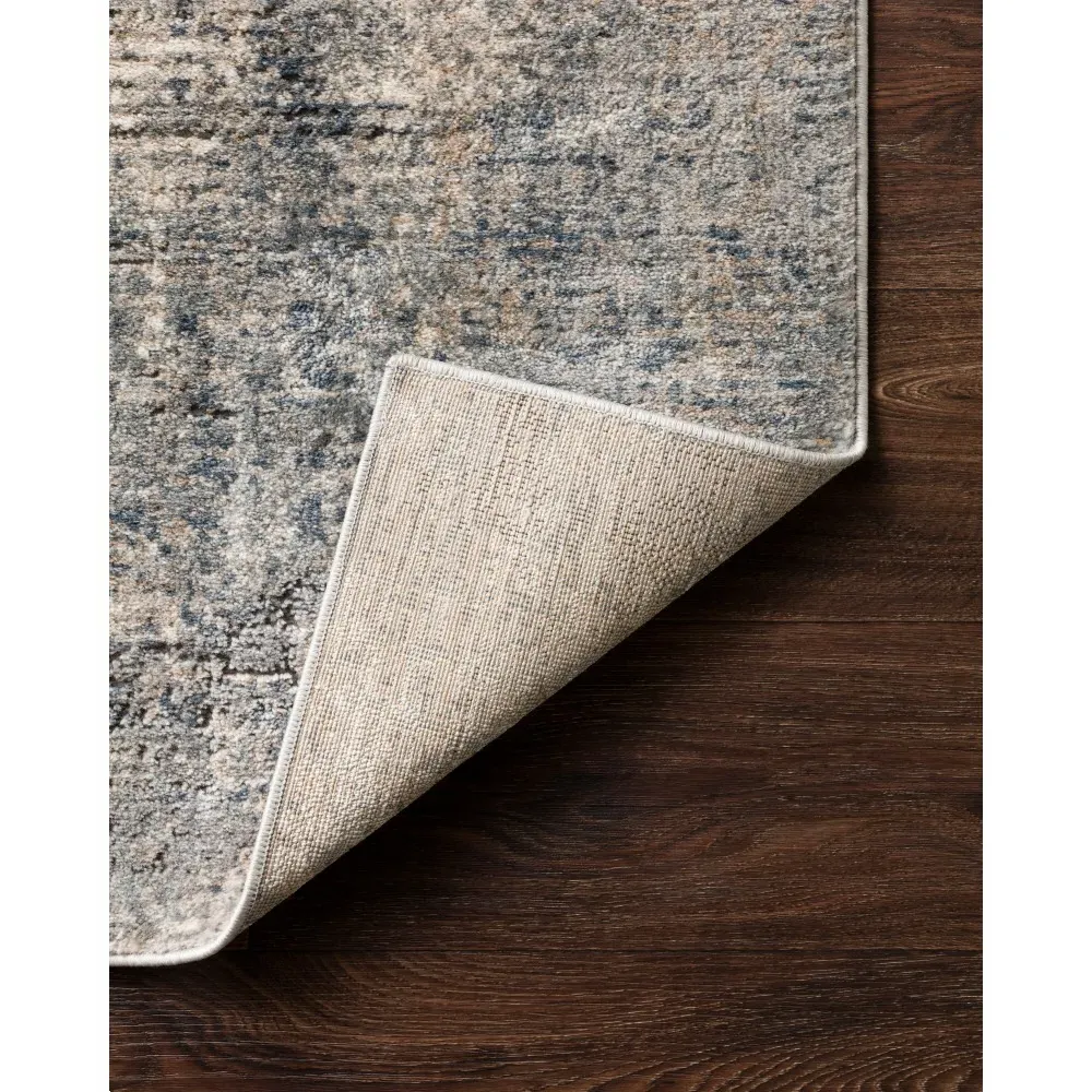 The Ulandra rug sample offers a preview of the abstract patterned design with its blue and grey finish. Constructed from polypropylene high pile and polyester low pile, it features power loomed construction for durability. The cotton and polyester backing provides stability, while the 0.25-inch pile height adds texture and comfort.