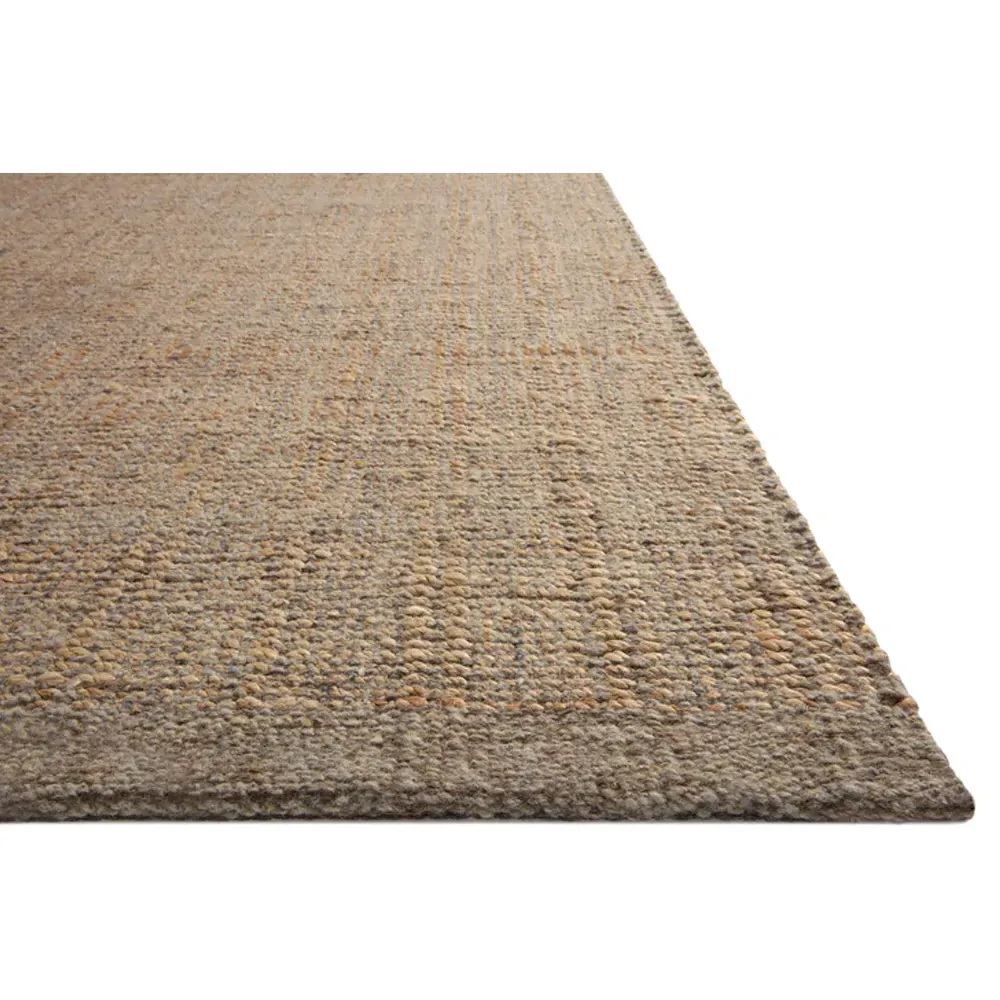 2 feet 3 inches x 3 feet 9 inches. Pile: 0.5 inches high. Constructed from 53% jute and 47% wool. Finished in charcoal and natural. Handwoven.