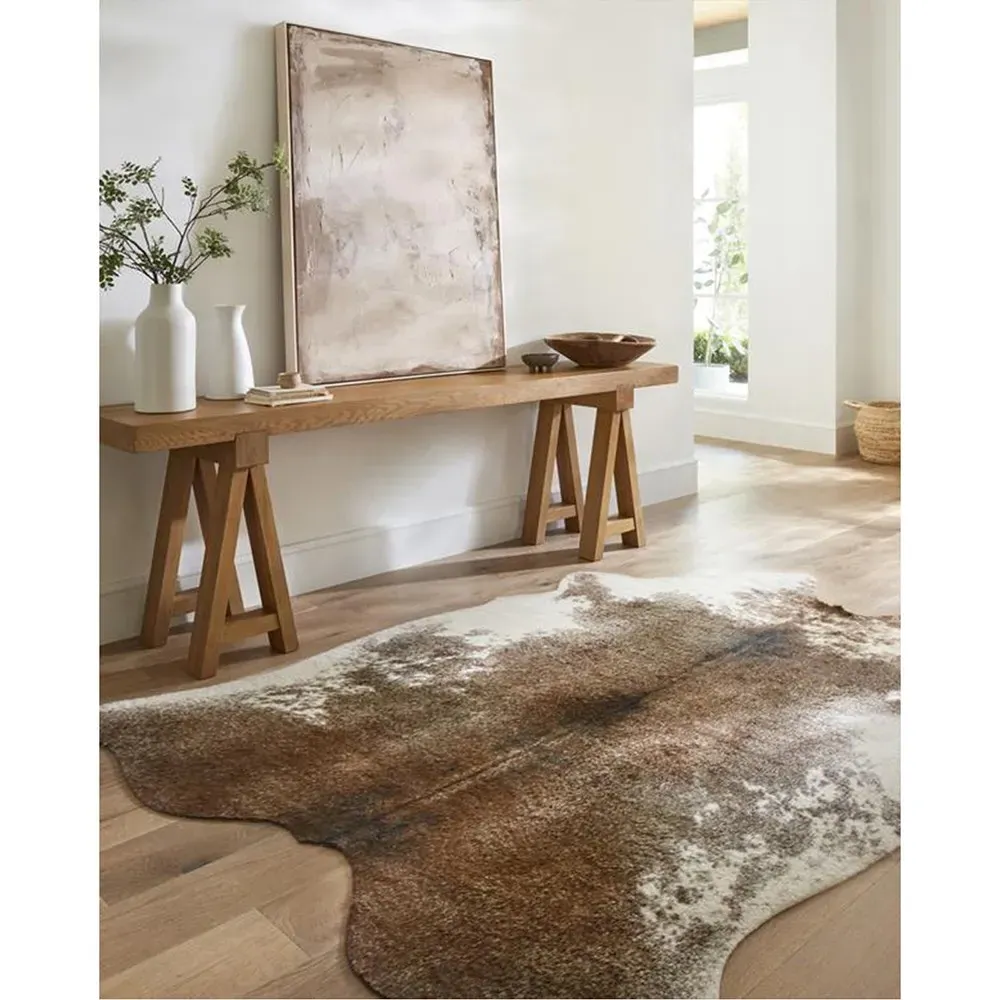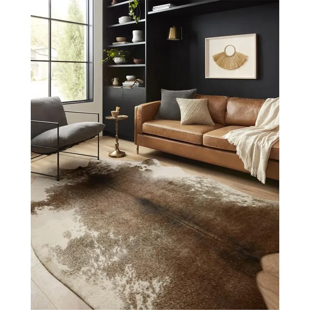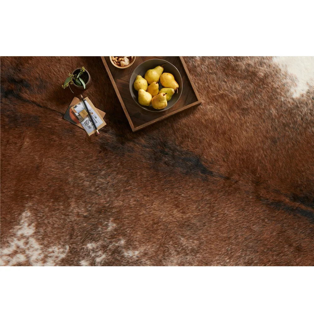 The Xyra rug offers authentic faux hide appeal with its power loomed construction and rich brown finish. Its 0.25-inch pile height provides comfortable underfoot texture, while the felt backing ensures stability and floor protection. The durable blend of acrylic, modacrylic, and polyester delivers long-lasting performance for high-traffic areas.