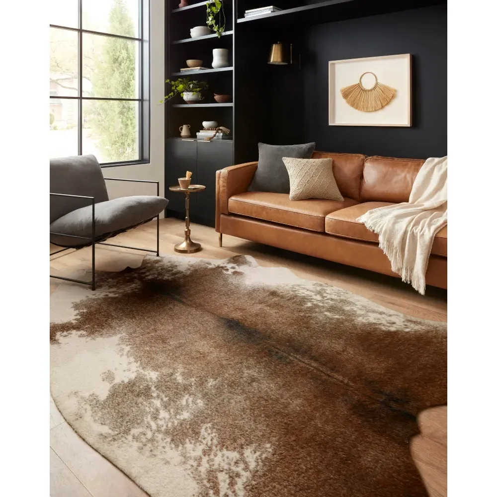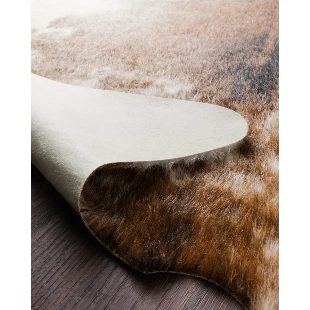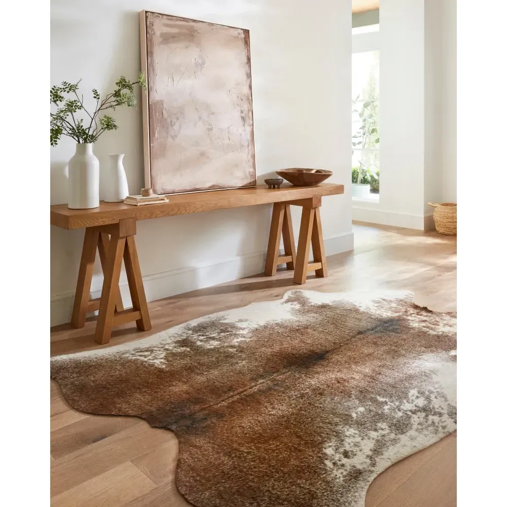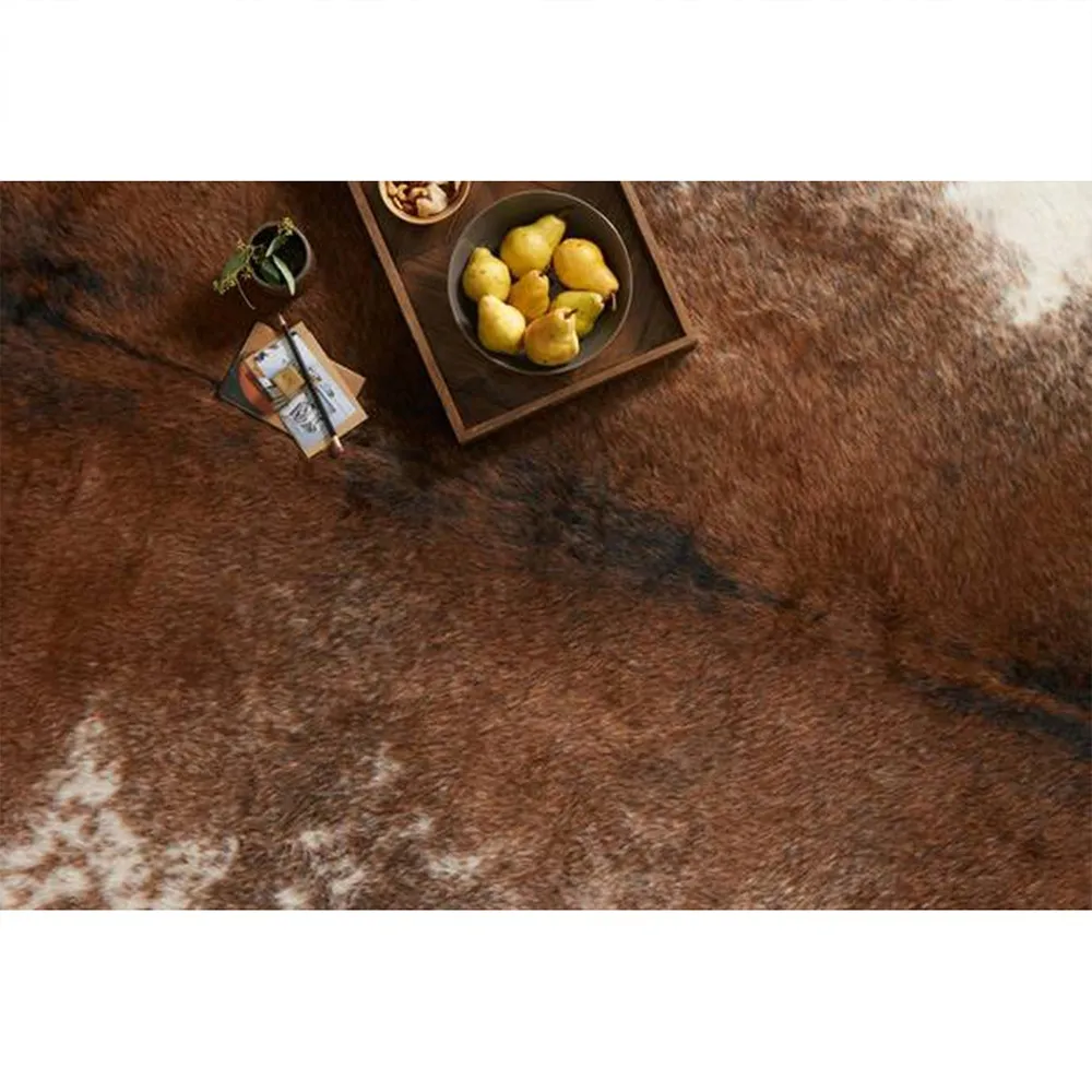 The Xyra rug offers authentic faux hide appeal with its power loomed construction and rich brown finish. Its 0.25-inch pile height provides comfortable underfoot texture, while the felt backing ensures stability and floor protection. The durable blend of acrylic, modacrylic, and polyester delivers long-lasting performance for high-traffic areas.