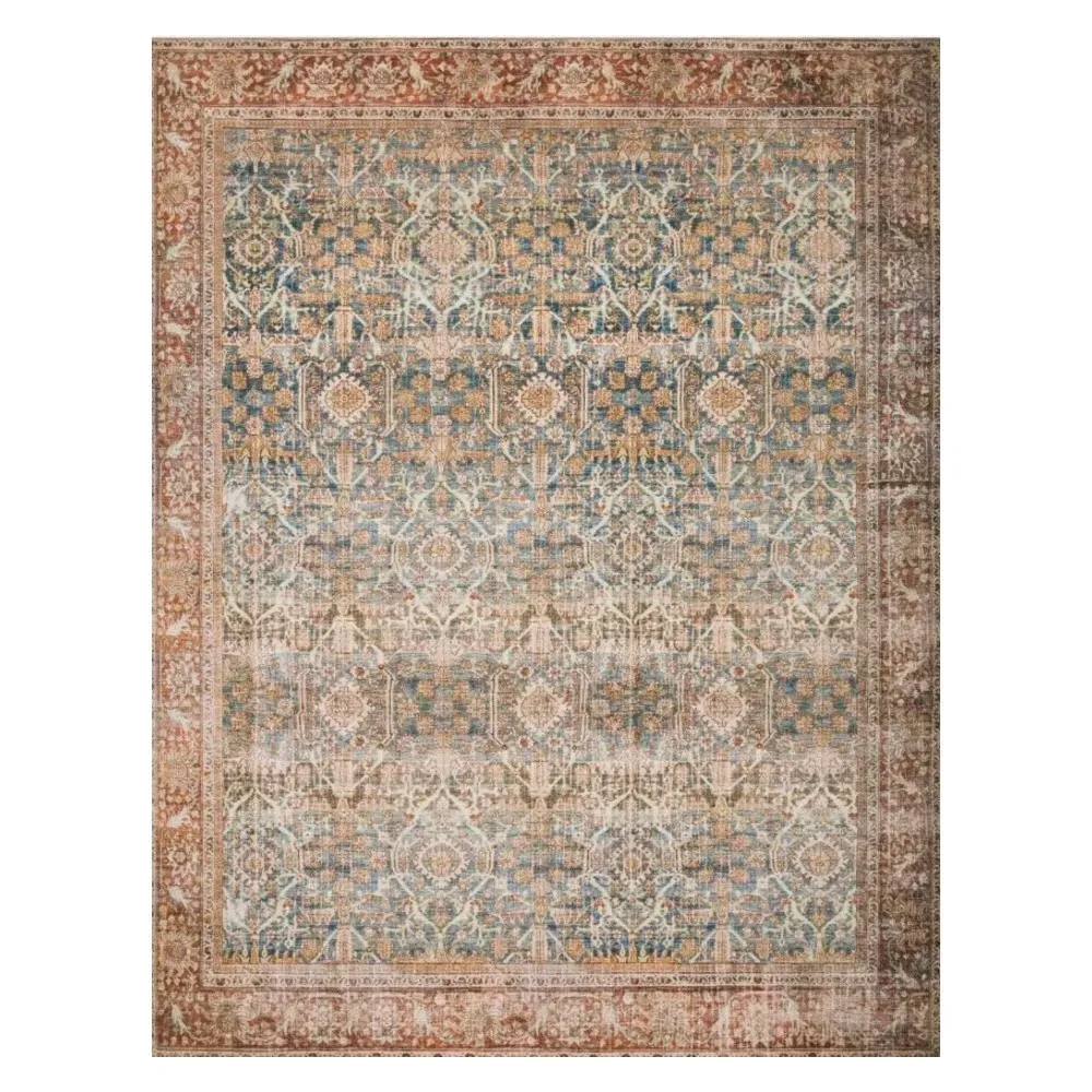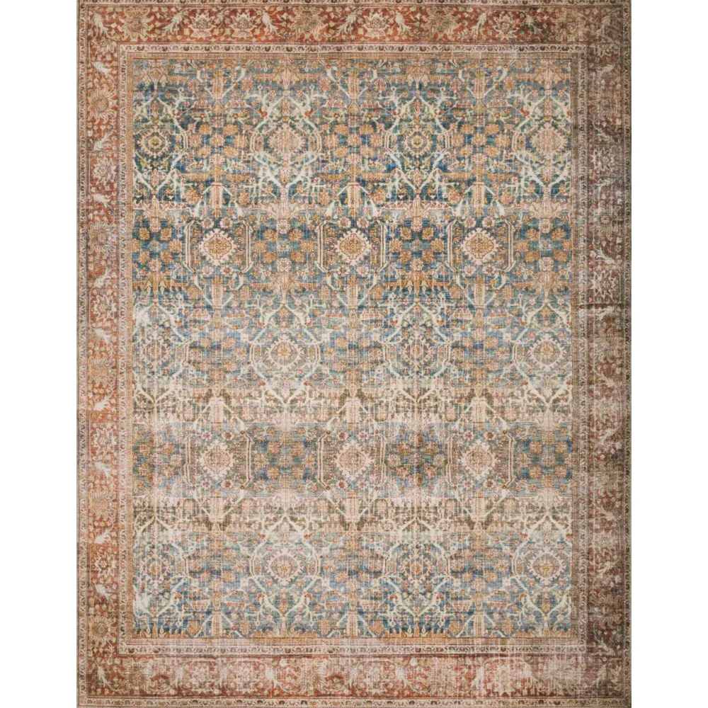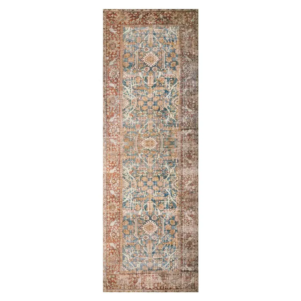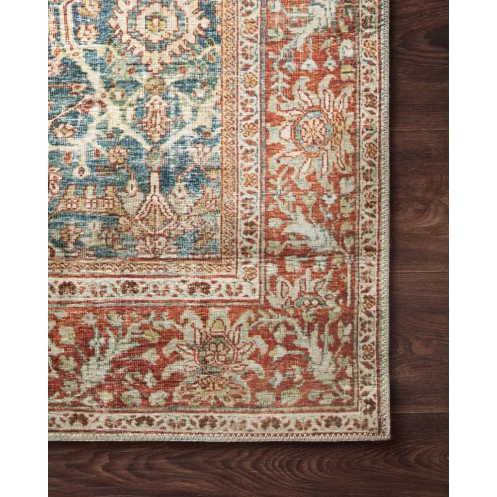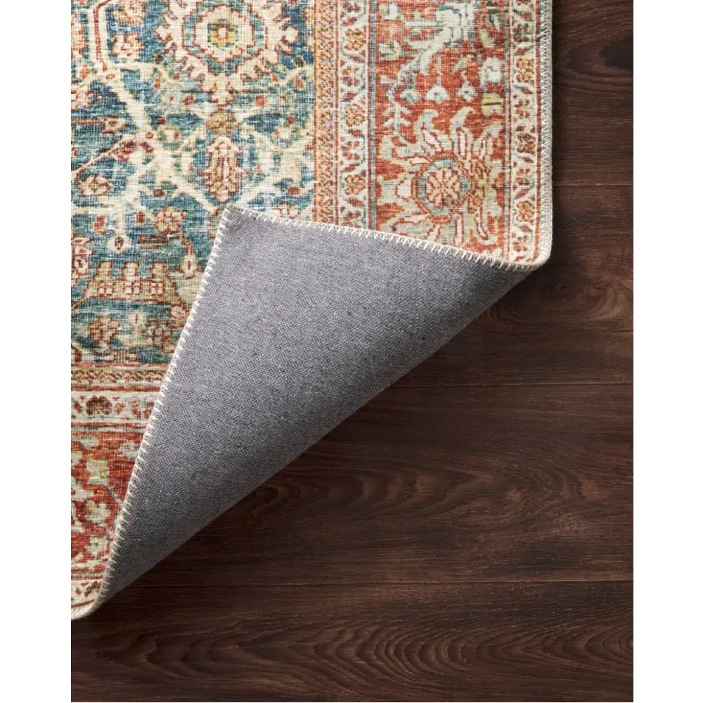 The Zethan rug sample offers a glimpse of global bazaar styling with its vibrant orange and blue patterned design. Constructed from 100% polyester pile, it features power-loomed construction for durability and consistent quality. The canvas backing provides stability, while the 0.13-inch pile height adds comfortable texture underfoot.
