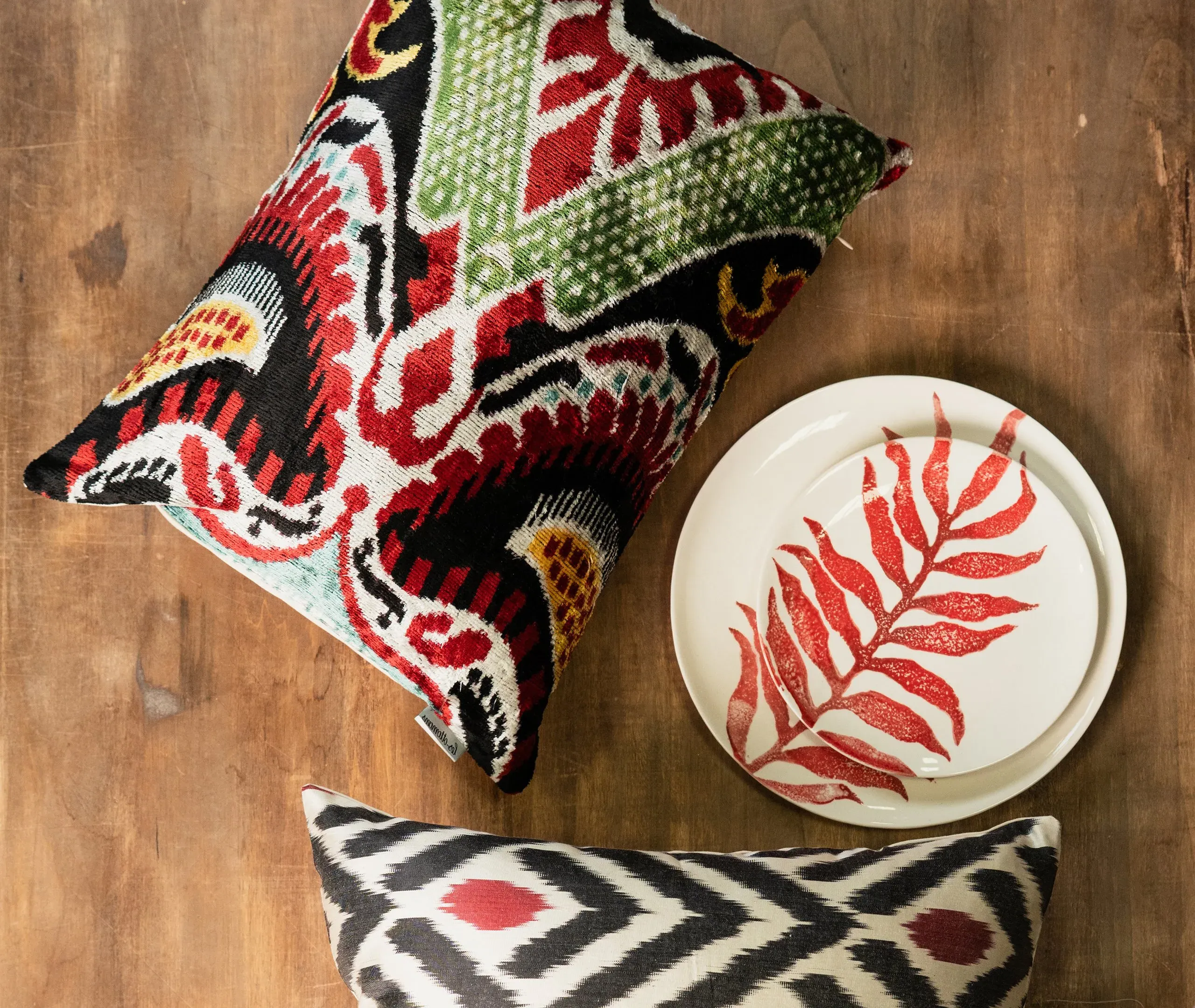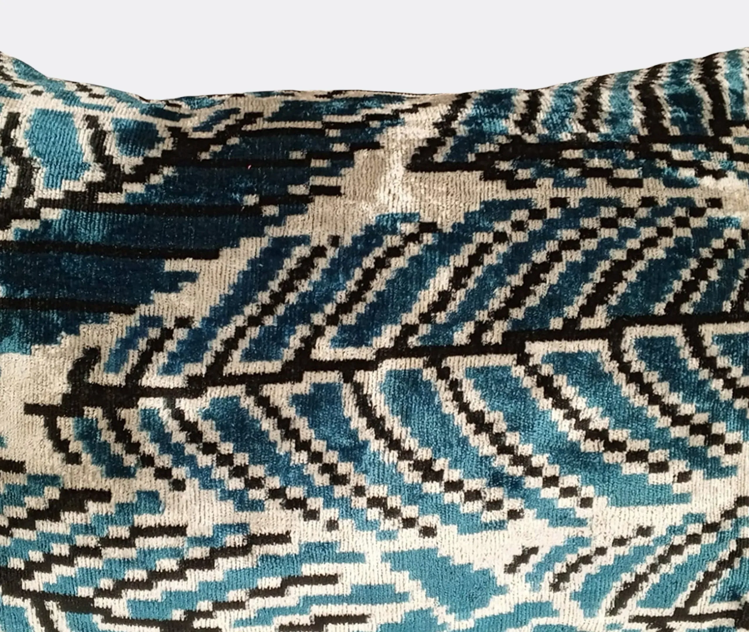 Introducing warmth and colour to the home, Les Ottomans' collection of silk velvet cushions reflect the Italian brand's reverence for traditional patterns and techniques. Handmade and featuring a vibrant pattern in shades of white and blue, this cushion can be mixed and matched with others in the series for a lively display.
