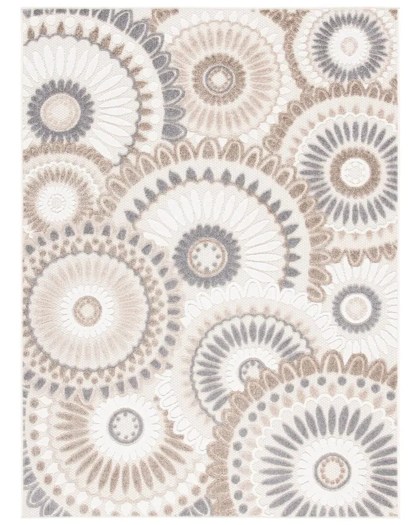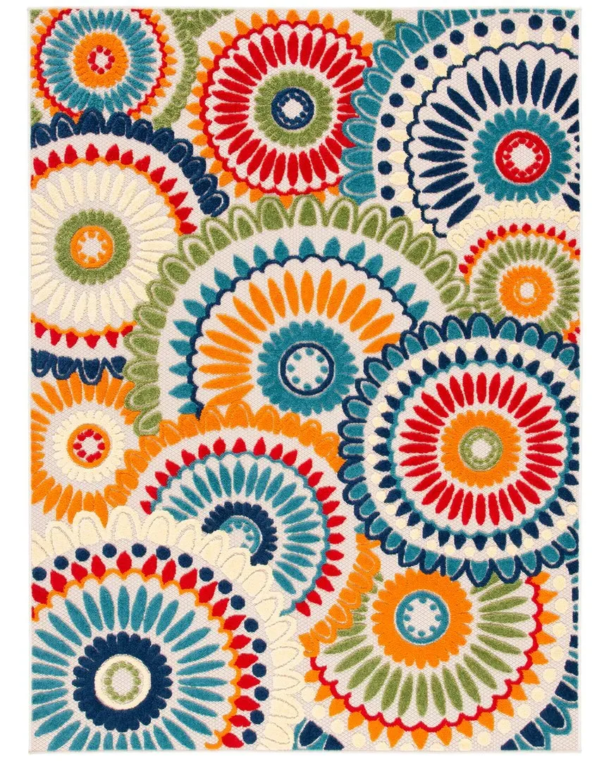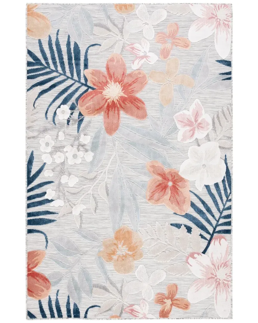 The Cabana Indoor/Outdoor Rug offers versatile functionality with its power loomed construction and jute backing. Its 0.25-inch pile provides comfortable underfoot feel, while the durable synthetic yarns resist weather, wear, mold and fading. The tropical-inspired motifs suit both indoor and outdoor spaces, and the polypropylene material ensures easy maintenance with shake or spot cleaning.