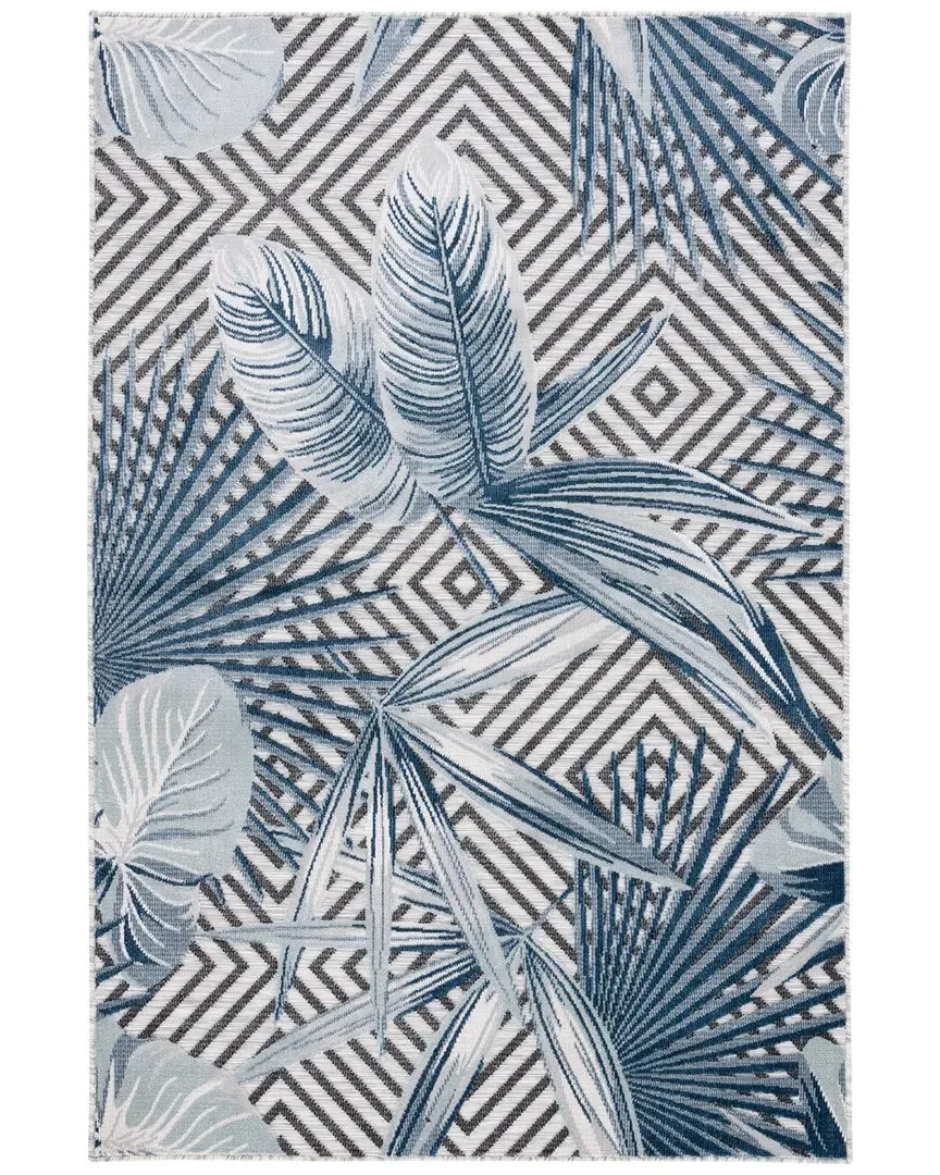 About the brand: Finely-crafted home furnishings with a unique flair. Color/pattern: blue, grey Design details: 0.25in pile; Power Loomed; Jute backing Cabana Outdoor Rugs Are Ideal For Any Busy Area Of The Home, Inside Or Out. Playful Florals, Lush Vines And Fanciful Geometric Motifs Add Tropical Resort Charm To Any Deck, Porch, Or Patio. Cabana Patio Rugs Are Made Using Durable Synthetic Yarns For Resistance To Weather, Wear, Mold And Fading From The Sun. Suitable for Indoor/Outdoor use 100% Polypropylene Shake/Spot Clean Only Made in Turkey Please note: Measurements were taken by hand and are approximate; Please allow for slight variations.