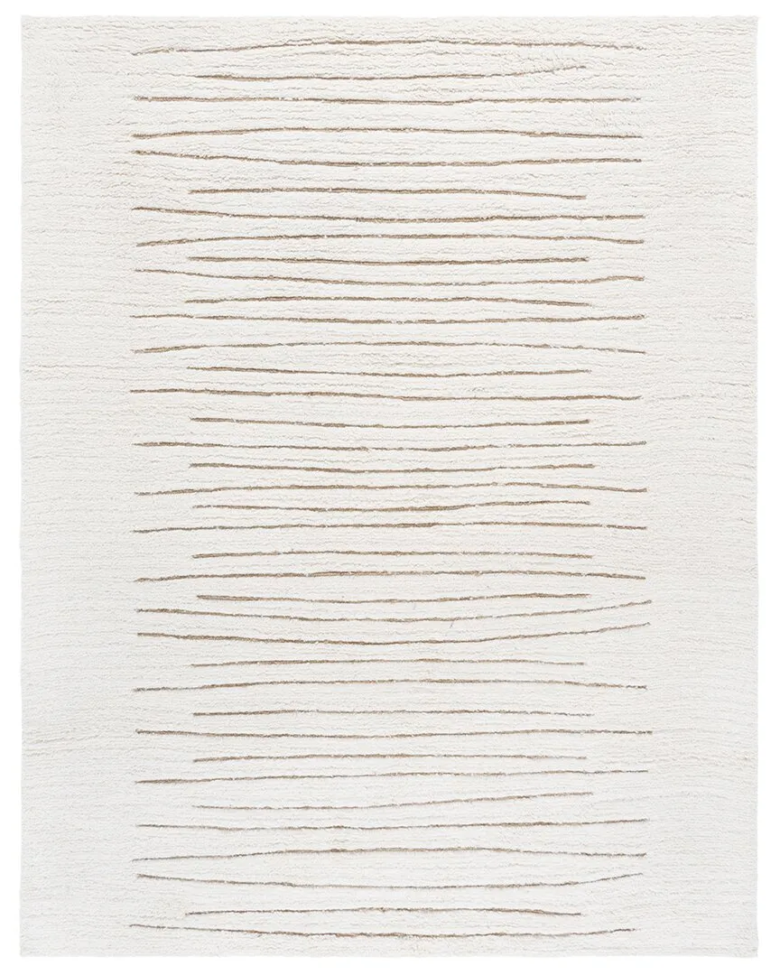 About the brand: Finely-crafted home furnishings with a unique flair. Color/pattern: beige / ivory Design details: 3/4in pile; hand woven; no backing, rug pad reccommended Suitable for indoor use 70% Wool, 20% Cotton,10% Polyester Use rug protectors under the legs of heavy furniture to avoid flattening of your rug pile. Rotating your rug every few months will help relieve areas from excessive wear. Packing and shipping may cause temporary creases in area rugs. To remove them back-roll/reverse roll your rug and allow time for the creases to relax. Wool rugs, especially new wool rugs, may shed. To reduce excessive shedding, vacuum your rug 1-2 times per week in the direction of the pile. Shedding should diminish within several weeks. Vacuum thoroughly at least once a week with a canister vacuum. Do not engage beater bars. Rugs placed in high traffic areas of the home, office or rugs exposed to household pets should be vacuumed more frequently. Avoid vacuuming the fringes of your rug, especially those on hand-knotted rugs. Use a broom to clean fringes. Brushing is the best way to remove stubborn pet hairs that the vacuum misses. For short pile area rugs, use a carpet brush or carpet sweeper. For longer pile a carpet rake works well. For rugs that are relatively easy to handle, bring them outdoors and shake vigorously to remove excess debris. For lighter stains or spills on synthetic yarns, sponge clean the area with cold water and mild detergent. For harder to remove stains, professional rug cleaning is recommended. Imported Please note: Measurements were taken by hand and are approximate; Please allow for slight variations.