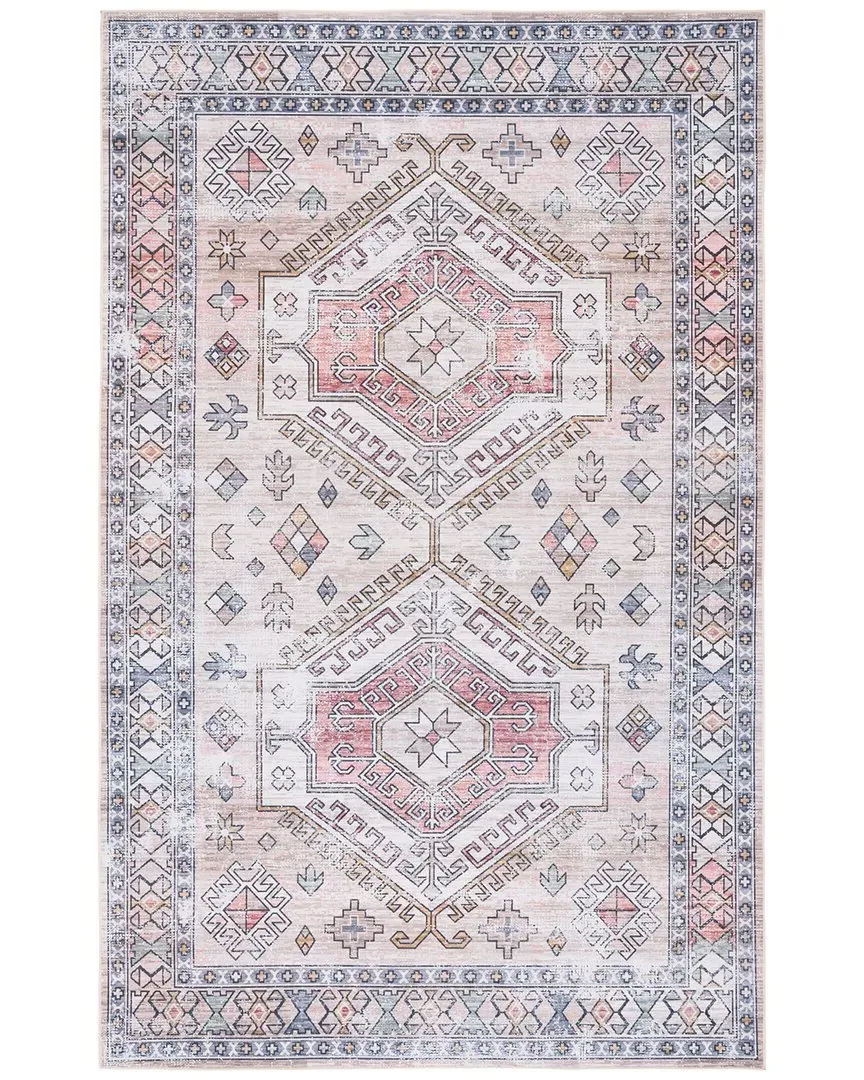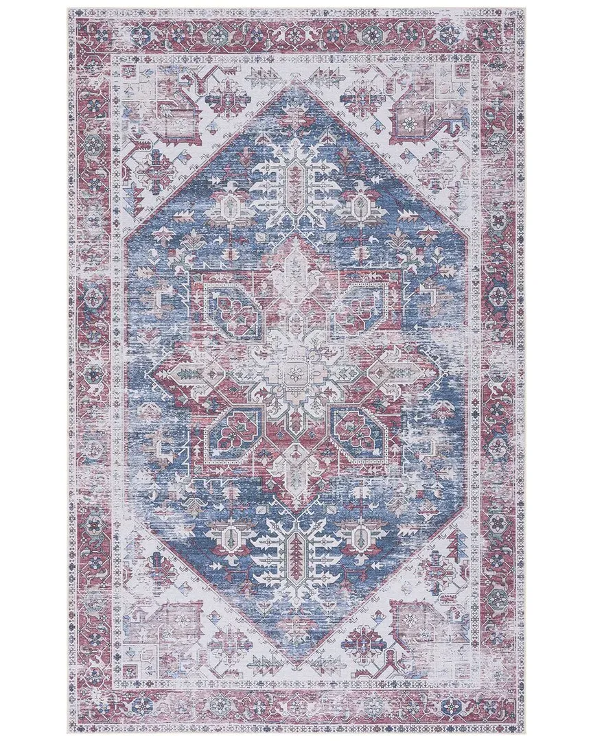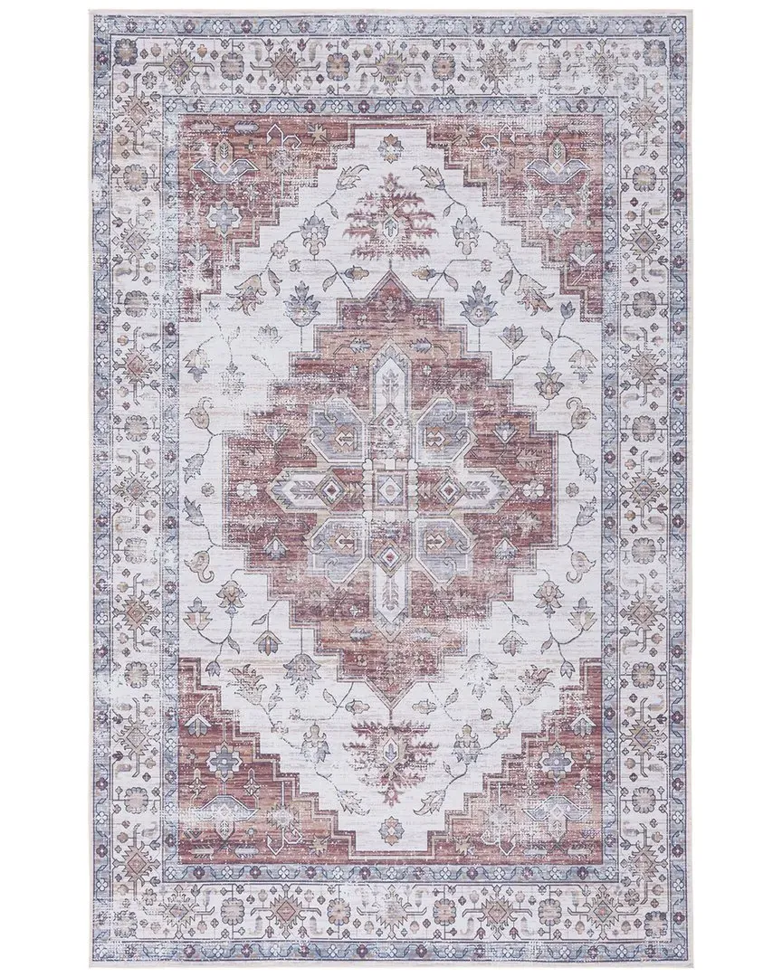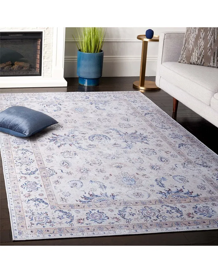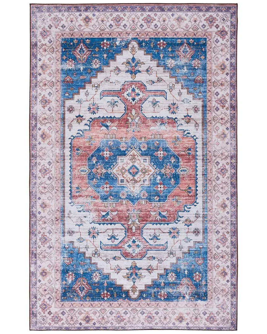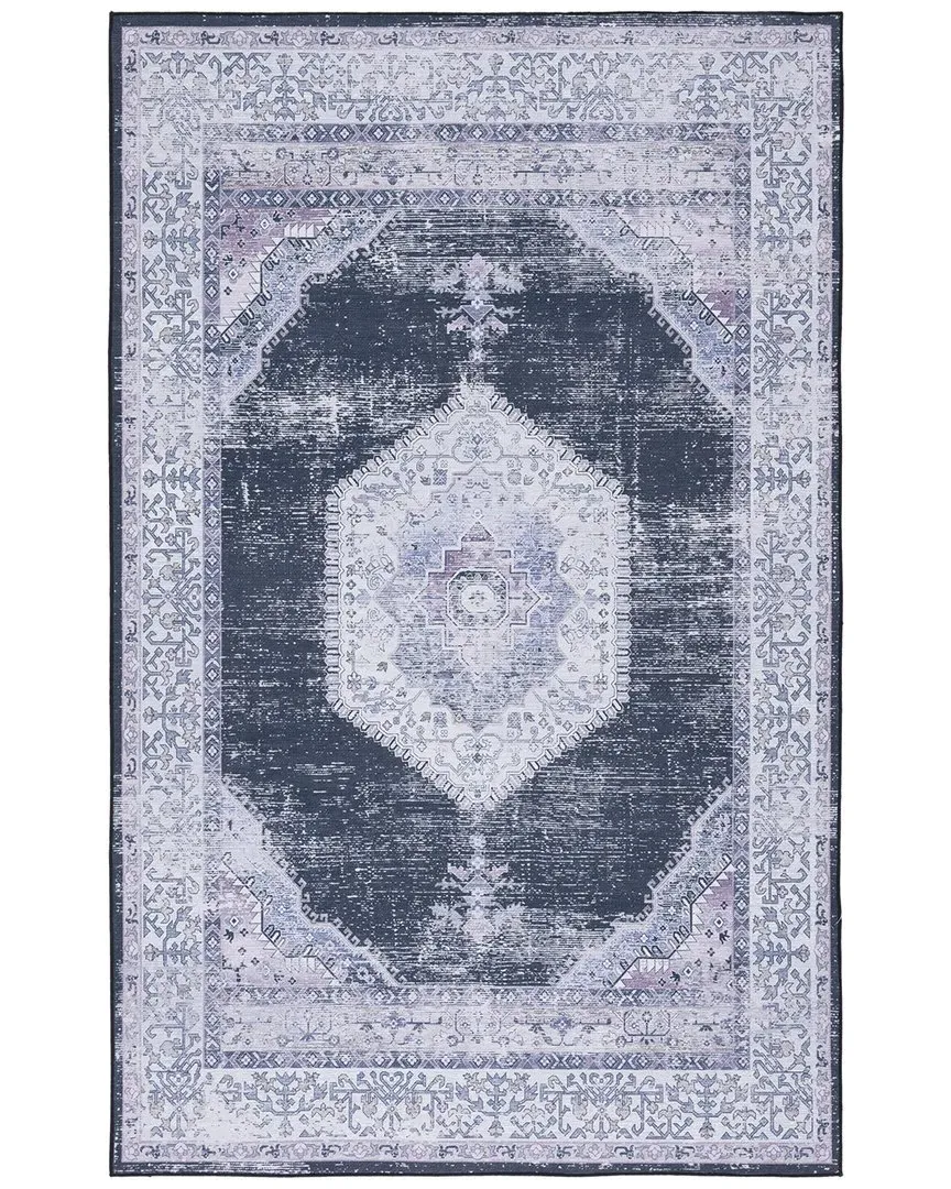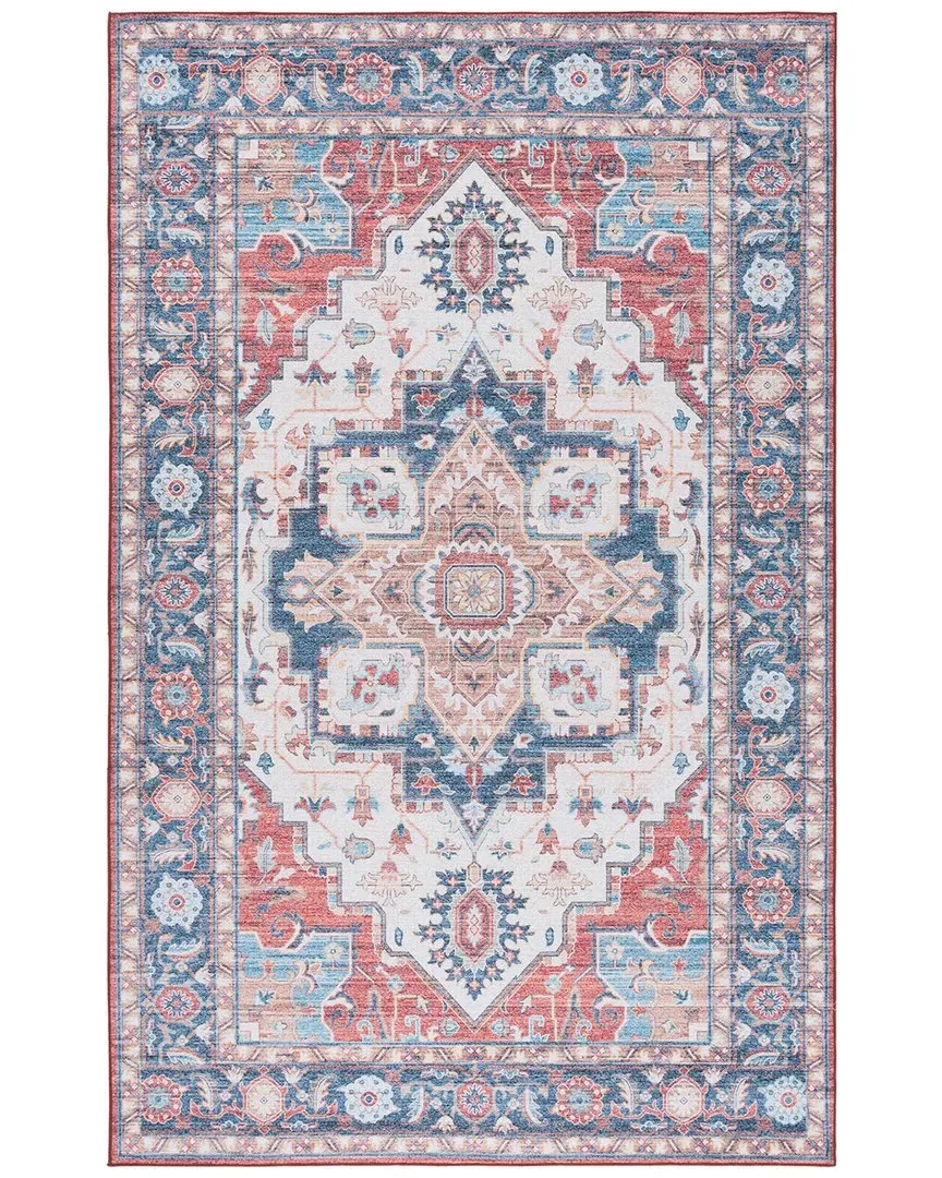 The Tucson Area Rug offers comfort and durability with its power-loomed polyester pile construction. Its 0.13-inch pile height provides softness underfoot, while the dot backing with latex ensures slip-resistant stability. The machine-washable design suits everyday use, and the polyester material adds easy maintenance and longevity.