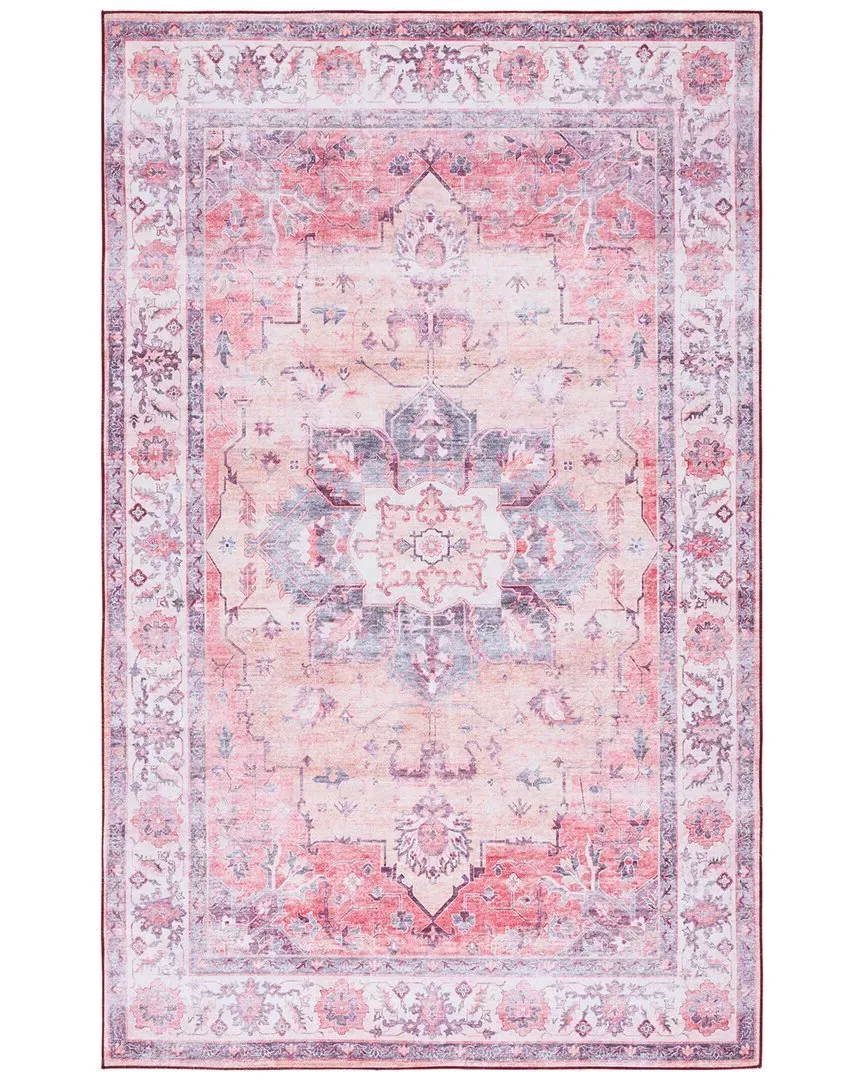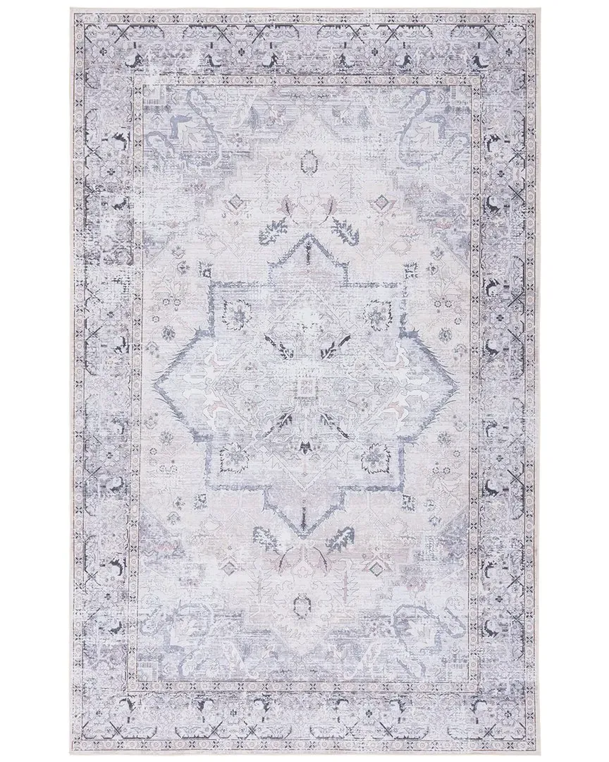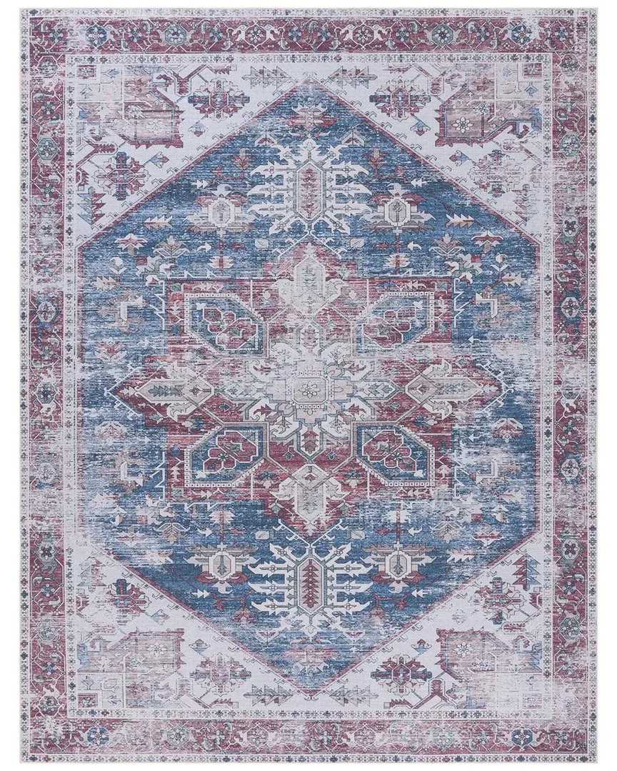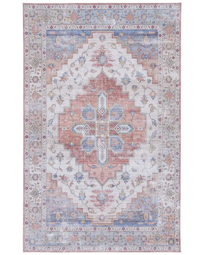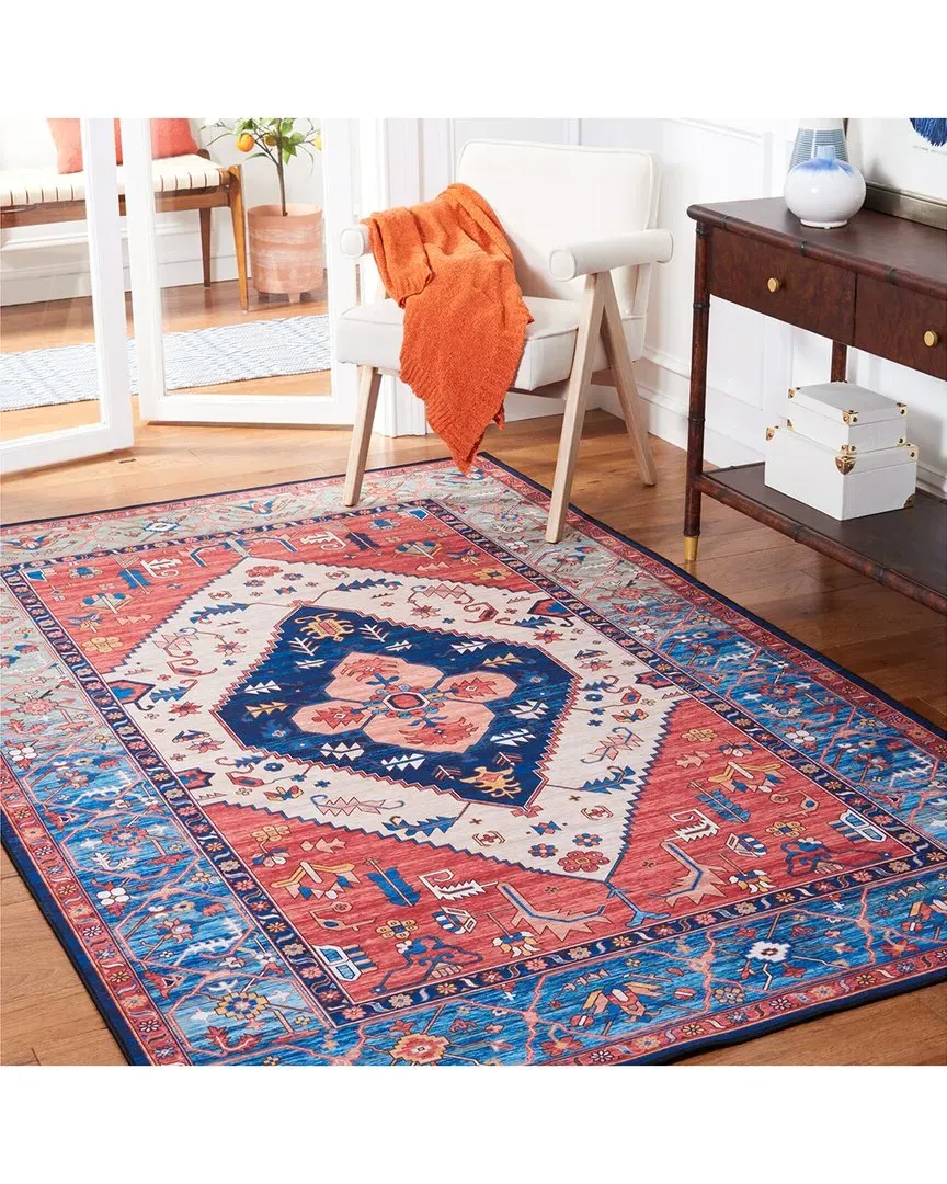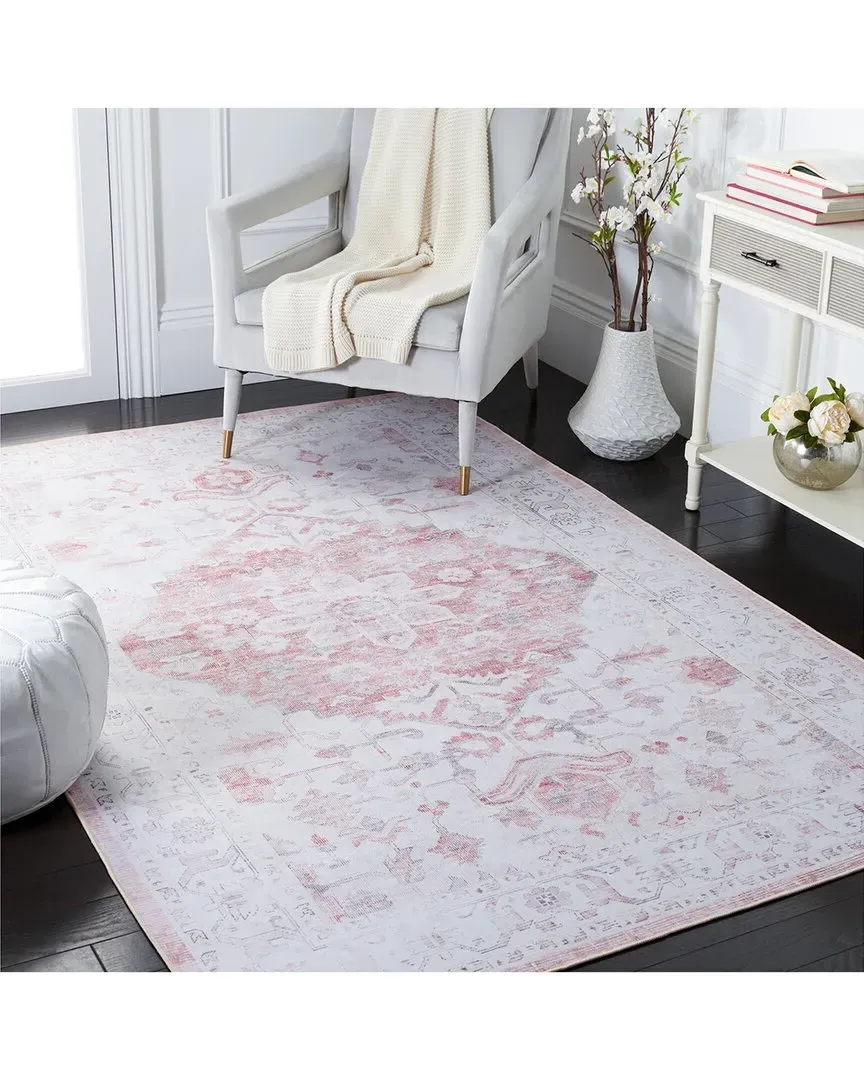 The Tucson Area Rug offers comfort and durability with its power-loomed polyester pile construction. Its 0.13-inch pile height provides softness underfoot, while the dot backing with latex ensures slip-resistant stability. The machine-washable design suits everyday use, and the polyester material adds easy maintenance and longevity.