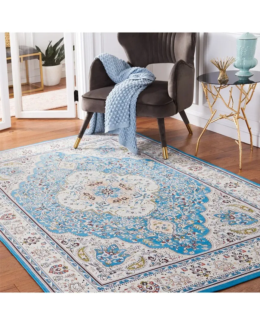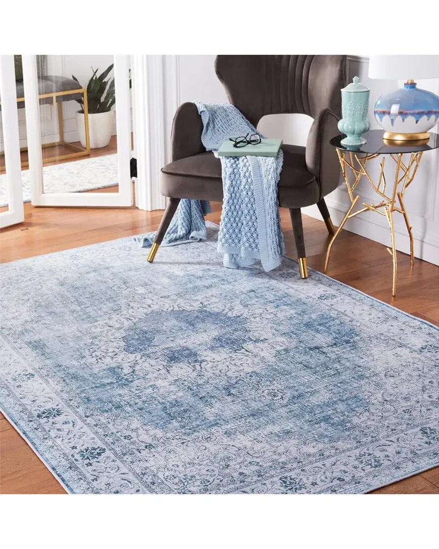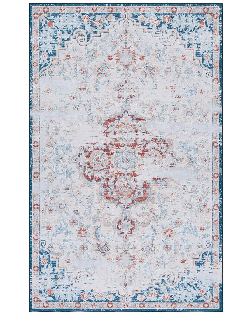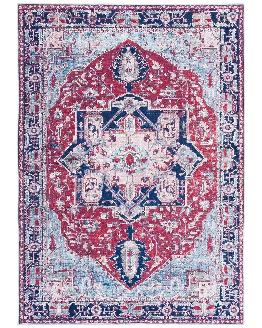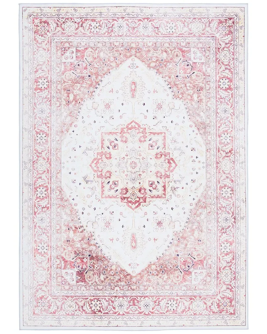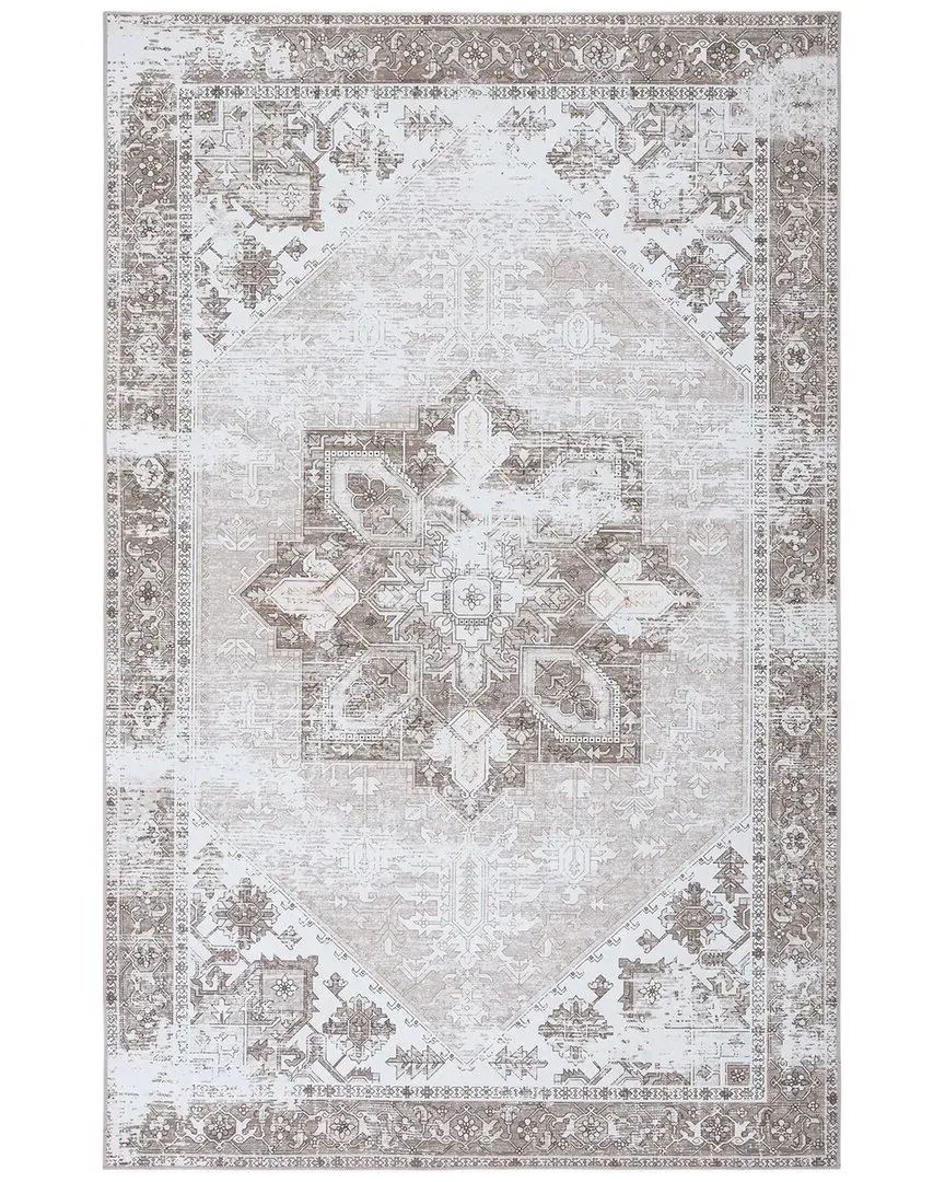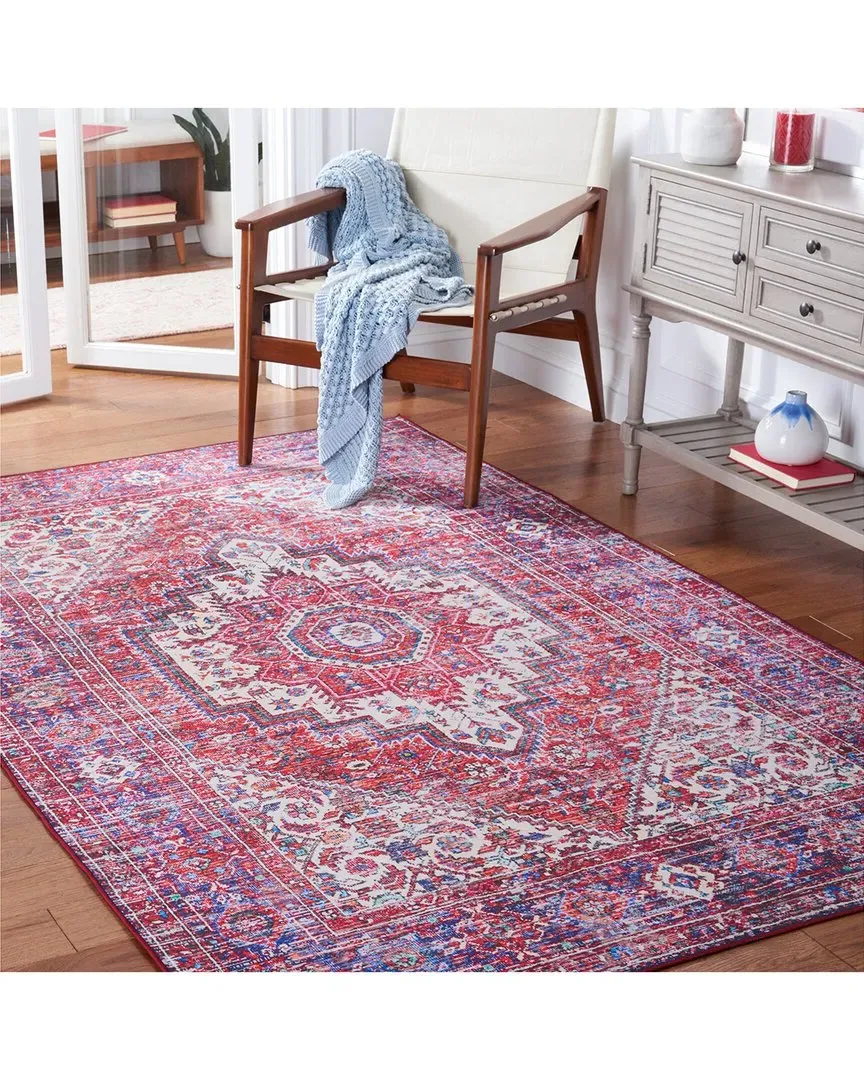 The Tucson Area Rug offers comfort and durability with its power-loomed polyester pile construction. Its 0.13-inch pile height provides softness underfoot, while the dot backing with latex ensures slip-resistant stability. The machine-washable design suits everyday use, and the polyester material adds easy maintenance and longevity.